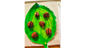 Děti přinesly na podzimní výstavku ořechy. Skořápky jsme použili na výrobu těchto berušek. Jsou natřené temperovou barvou a