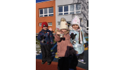 Tvorba postav z odpadových materiálů – každá třída druhého stupně vytvořila originální postavu z plastů, papíru, hadrů a dalších zbytkových materiálů.