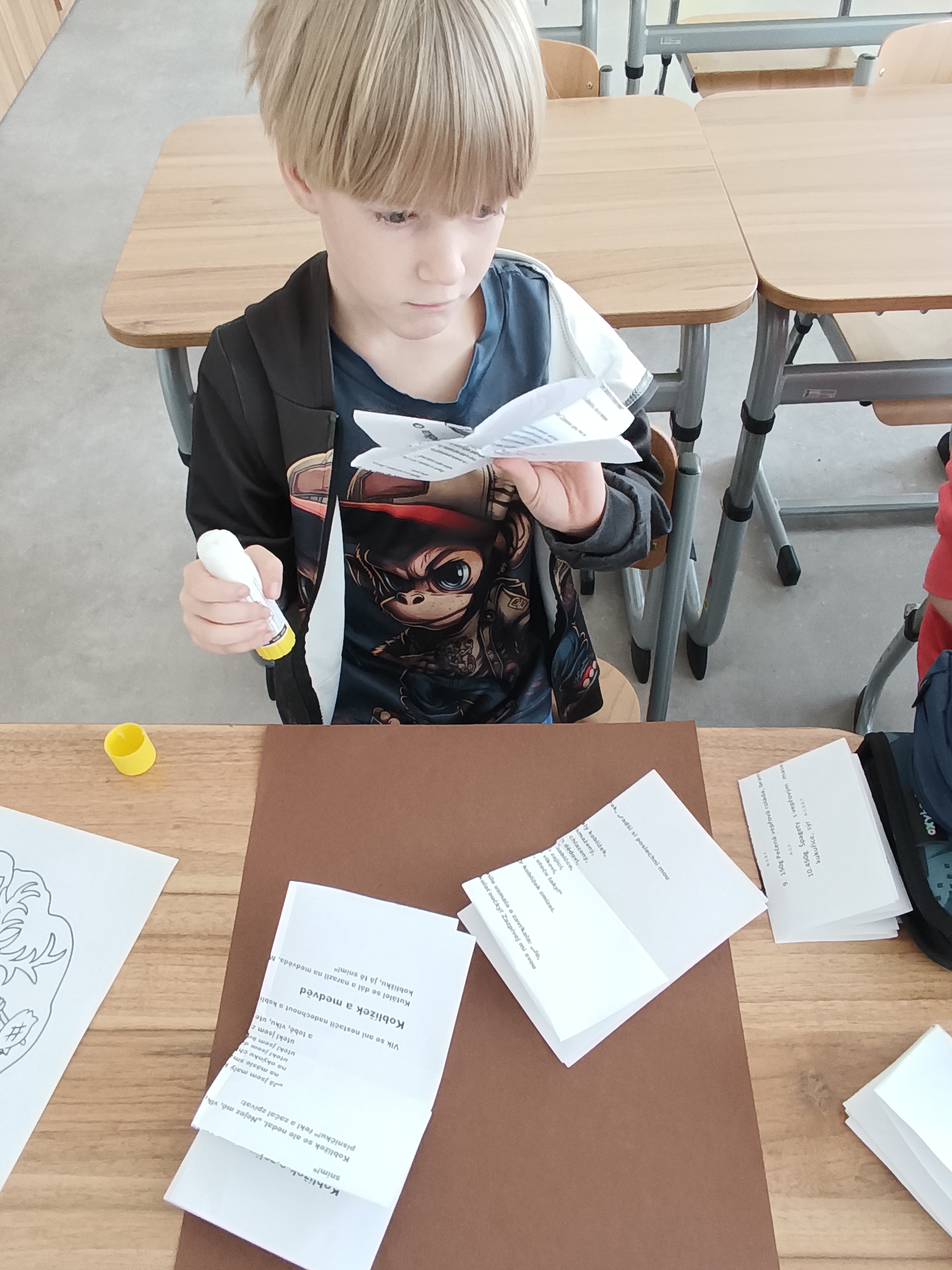 Protože je březen Měsícem knihy, Družínci si ze starých českých pohádkových pracovních listů (určených ke skartaci) složili pohádkový příběh ve tvaru knížek, vybarvili omalovánku dané pohádky a vše nalepili na barevné kartony.