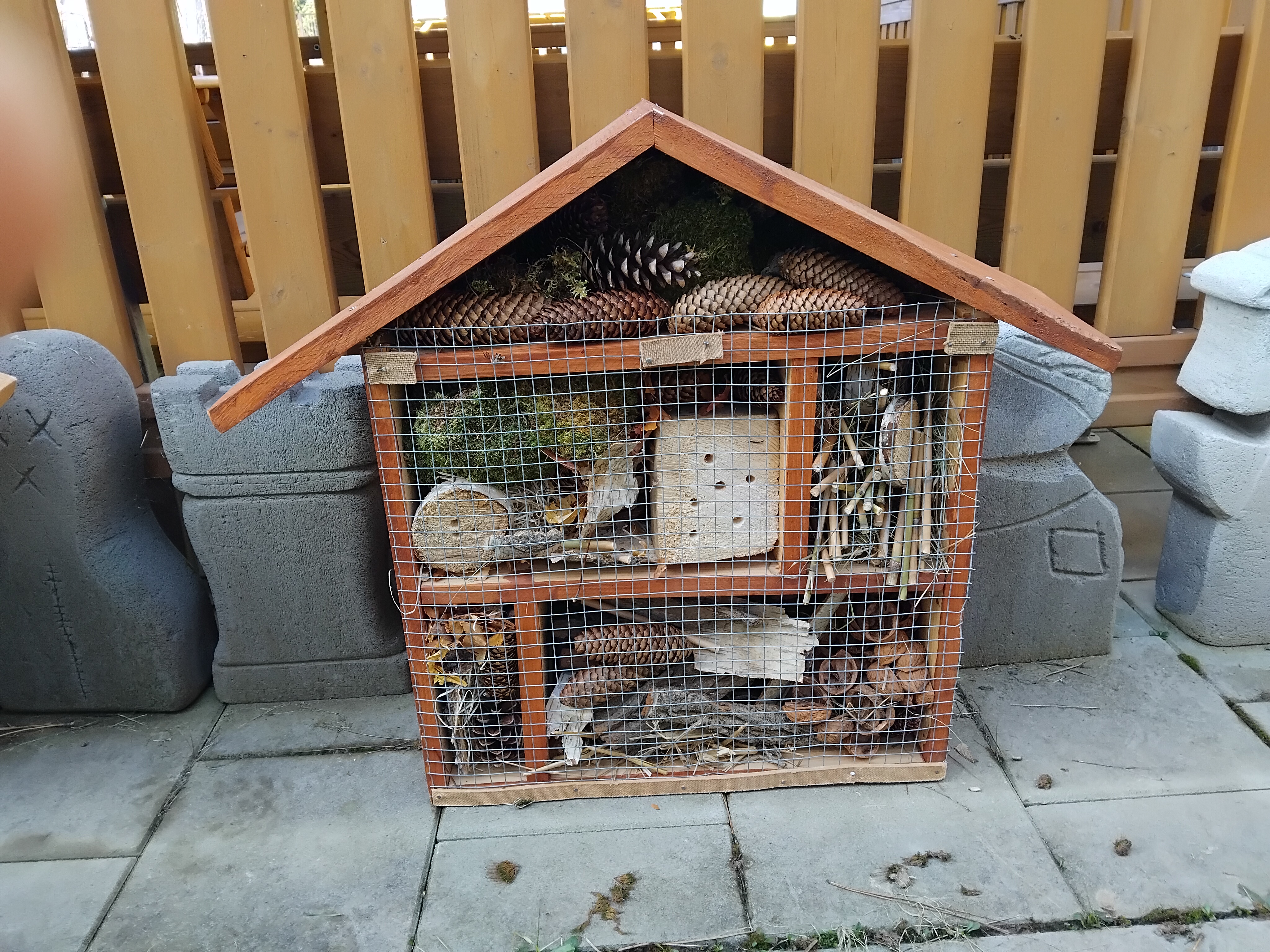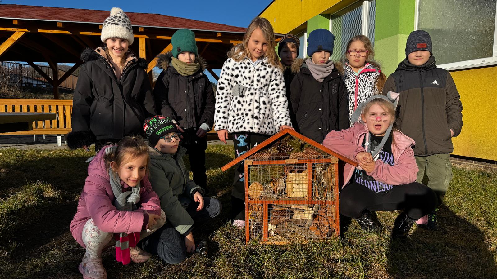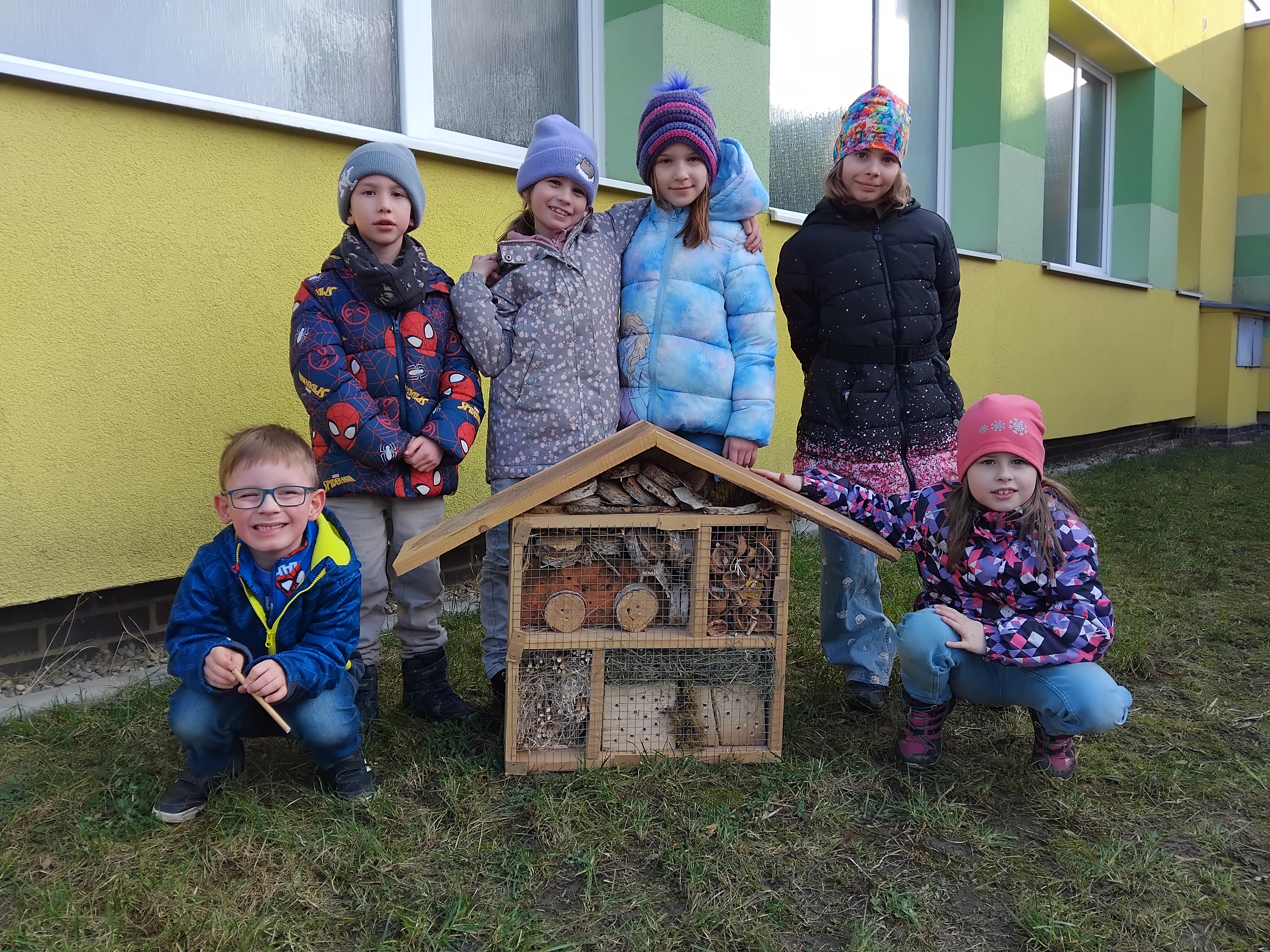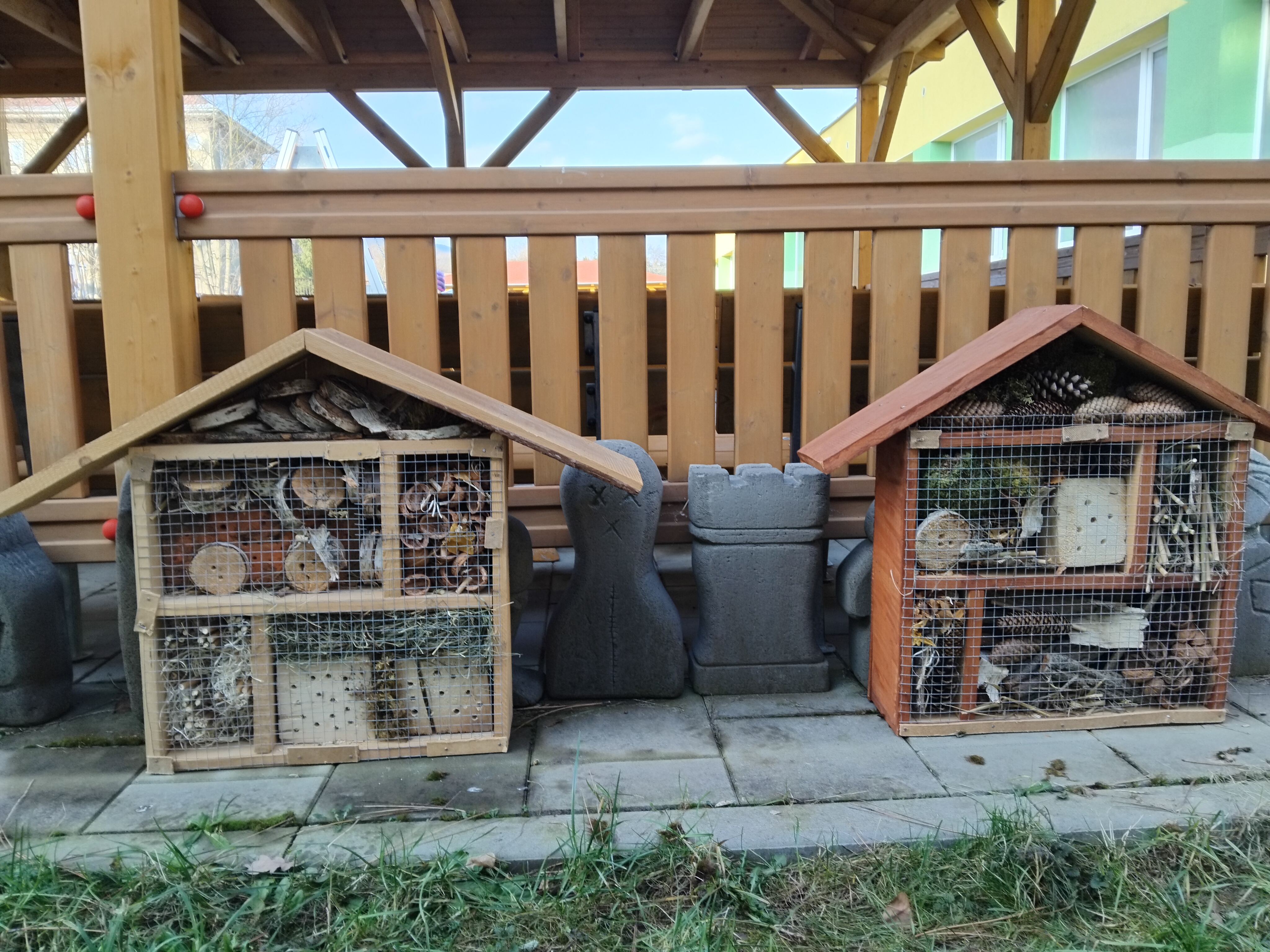 Hmyzí domky podporují biodiverzitu a pomáhají tak opylovačům i rostlinám. Konstrukce hmyzích domků je vyrobena ze starých prken, které byly znovu využity a nestal se z nich odpad. Naplnění přírodninami bylo pro děti možností, jak příjemně a smysluplně trávit čas venku při sběru přírodnin a zároveň se stát zručnějšími při práci s nářadím.