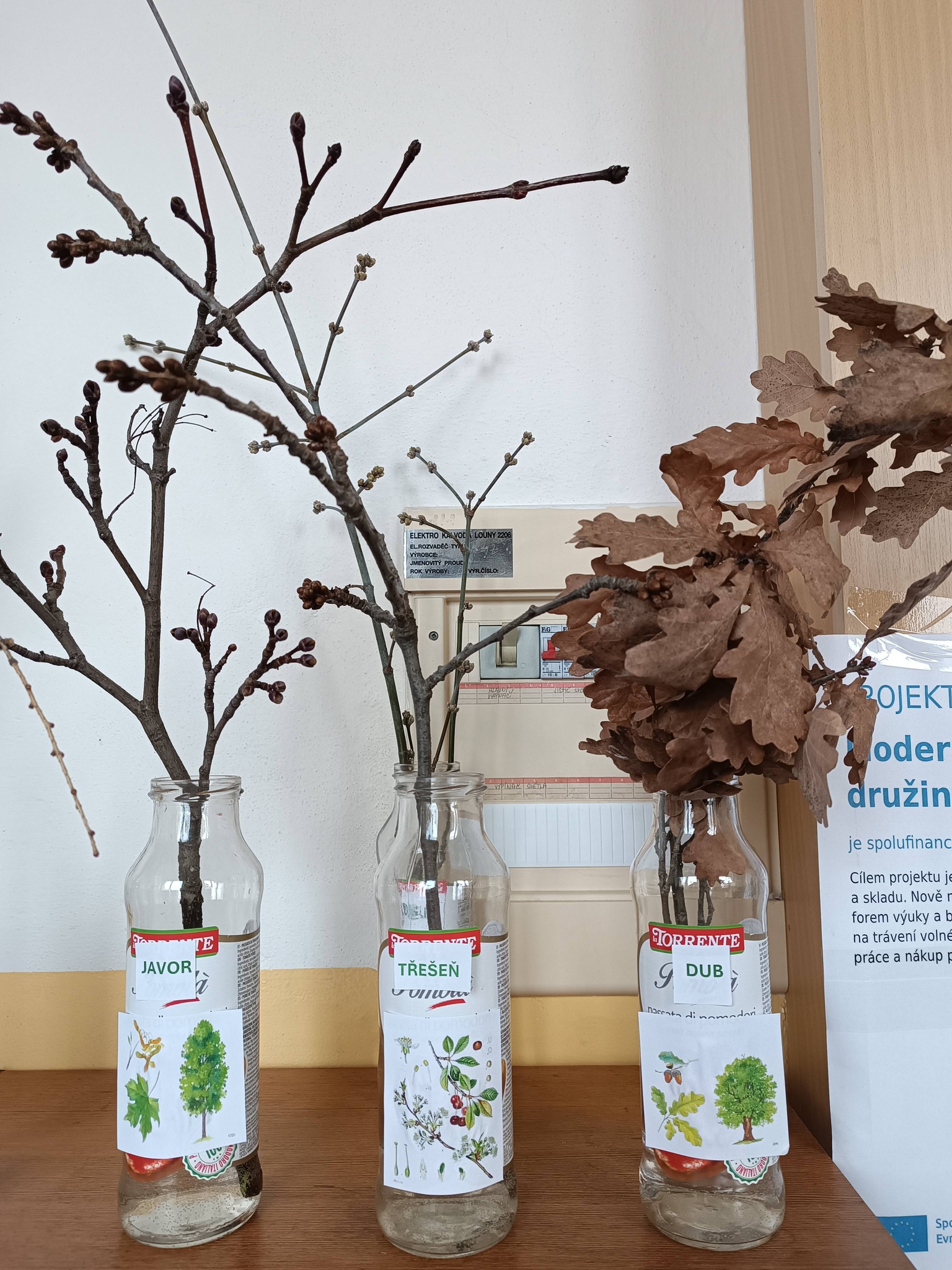 Družínci si vyzkoušeli poznat druhy stromů podle větviček a pupenů. Po správném určení udělali výstavku s větvičkami a názvy. Pozorují, jak pupeny raší, stávají se z nich první zelené lístky a vše si zapisují a zakreslují do svých badatelských listů.