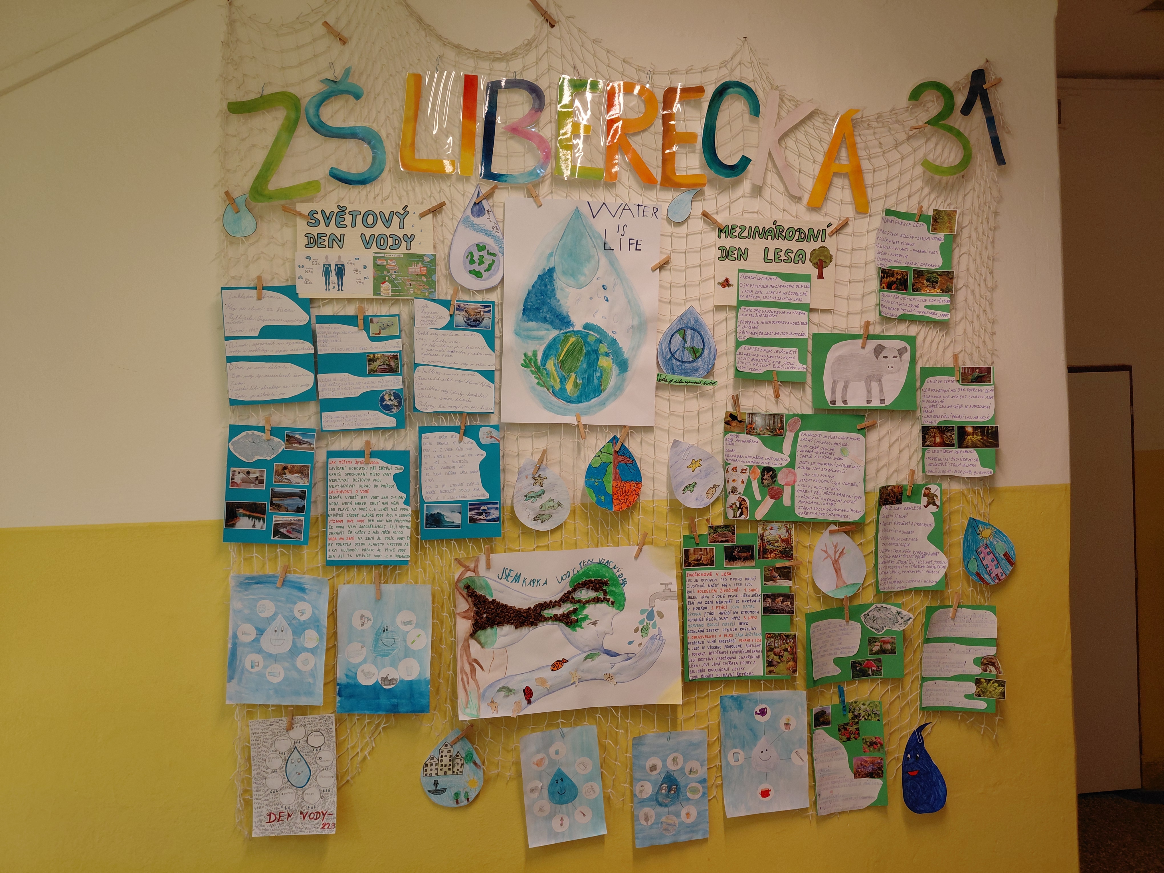 Tento rok jsme se v rámci naší budovy Liberecká zaměřili na tvorby projektů, které se týkají ochrany přírody a mezinárodních dnů. Různé třídy napříč 1. a 2. stupněm se každý měsíc pustí do tvorby výrobků na určená témata. 9. třídy vždy doplňují výrobky plakáty s různými informacemi. Všechny výrobky jsou vystaveny v přízemí, kde jsou pro všechny k dispozici. Po cestě do tříd si žáci informace pročítají a učí se tak ekologii zábavnou formou. Učitelé se také inspirují a dozvídají nové informace.