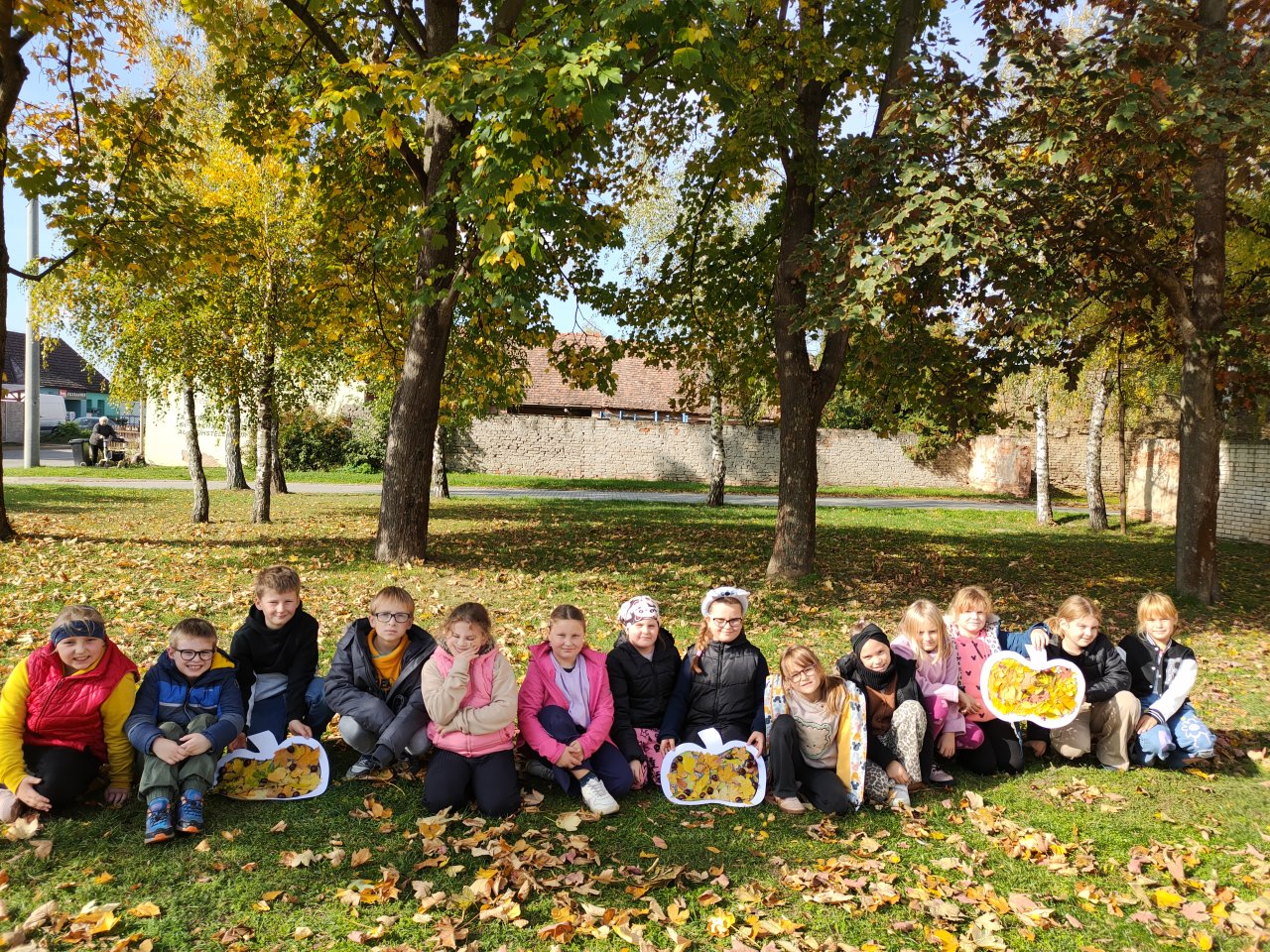 Druháci se vydali na podzimní vycházku do okolí školy. Sluníčko ještě hřálo, ale ve vzduchu už bylo cítit, že přichází podzim. Děti pozorovaly barevné stromy, sbíraly spadané listy a kaštany. Chtěly si z přírody přinést co nejvíce pokladů pro podzimní tvoření. Ve škole pak společně vytvořily krásnou podzimní výzdobu. Na výkresy nakreslily velké dýně z papíru, které ozdobily nasbíranými listy, semínky a dalšími přírodninami. Třída teď září barvami podzimu a všem připomíná, jak je toto roční období kouzelné.