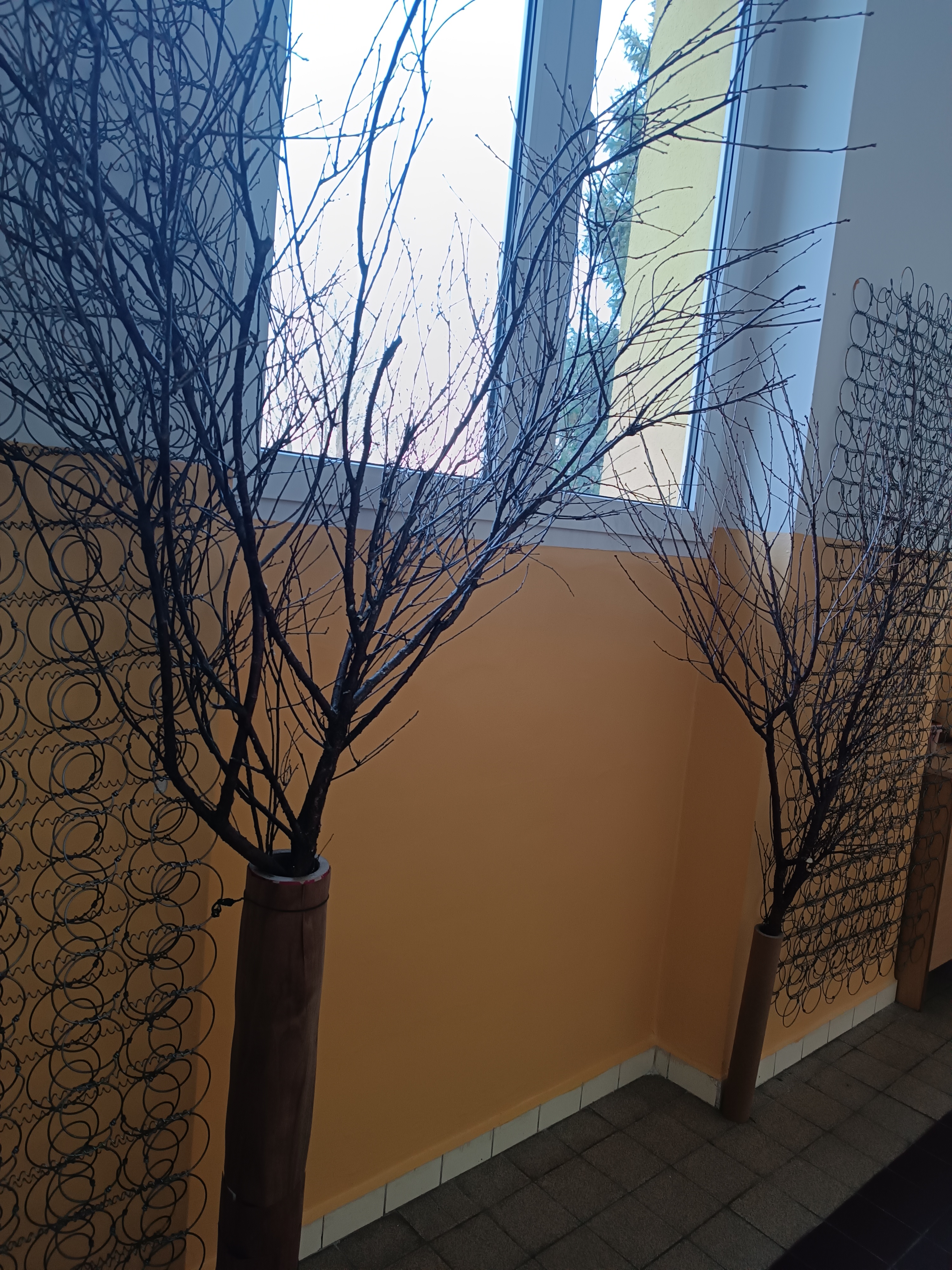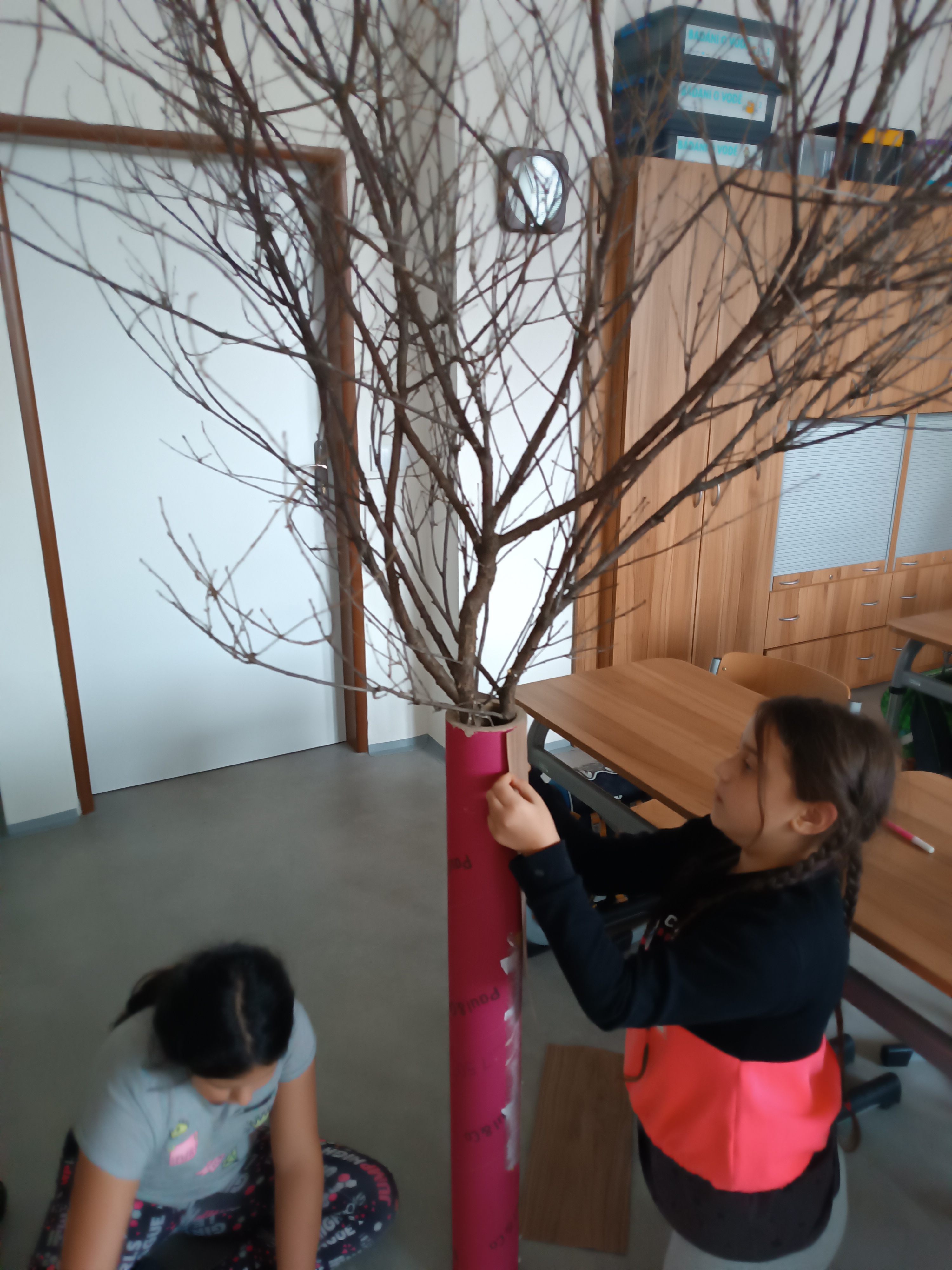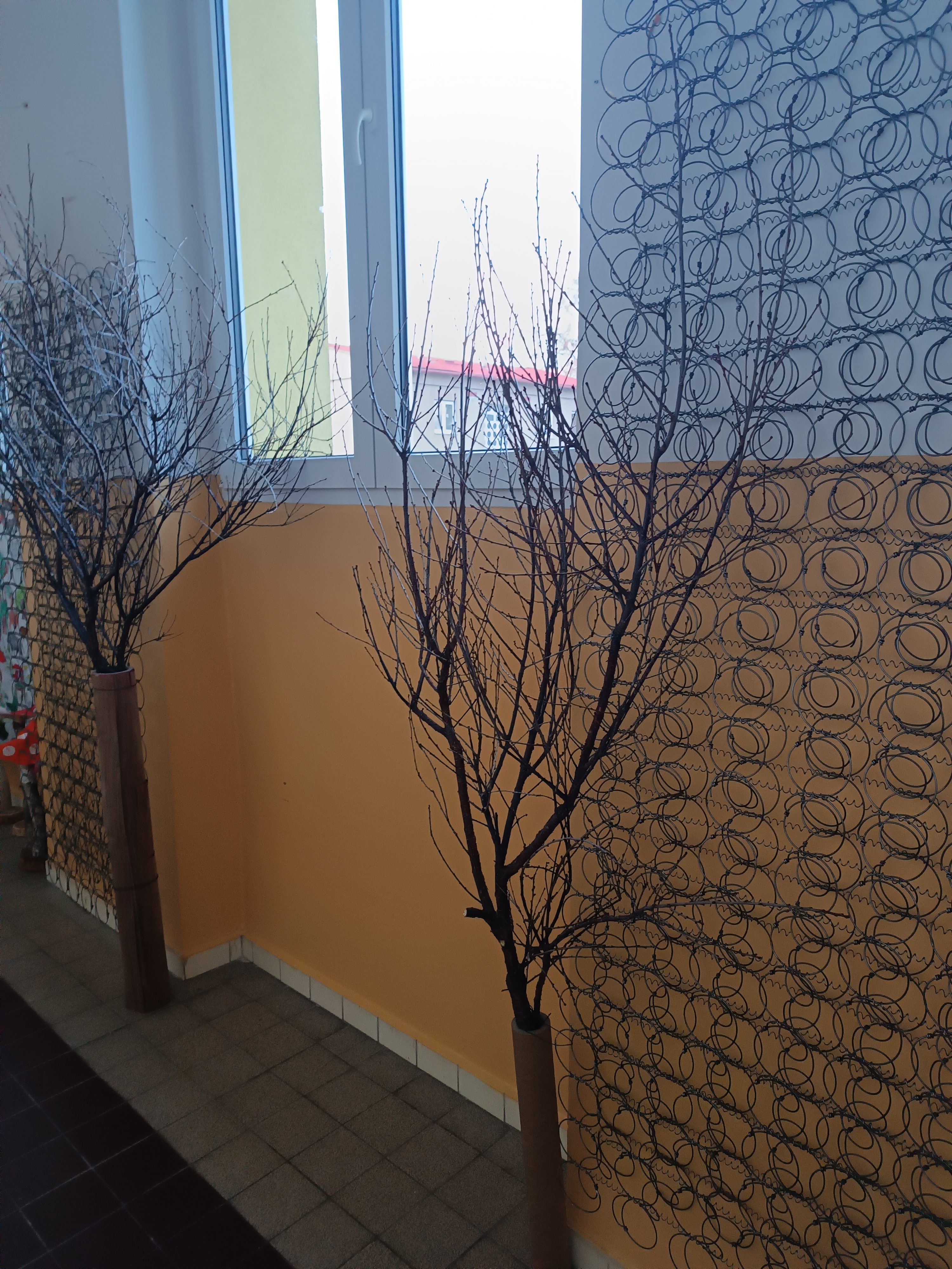 Protože první nástěnka na naše bádání měla velký úspěch i u rodičů a rychle se nám plní, rozhodli jsme se Družínky udělat další dvě. Opět se jedná o kovové konstrukce ze starých matrací, které jsme doplnili větvemi a kartonovými rolemi ( představují stromy).
