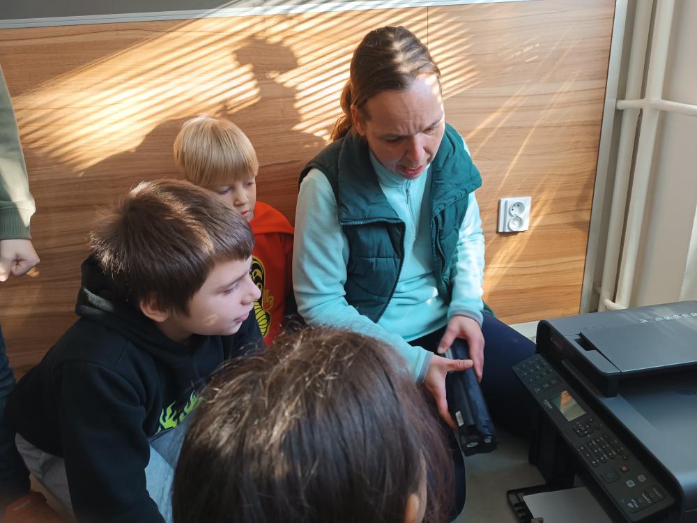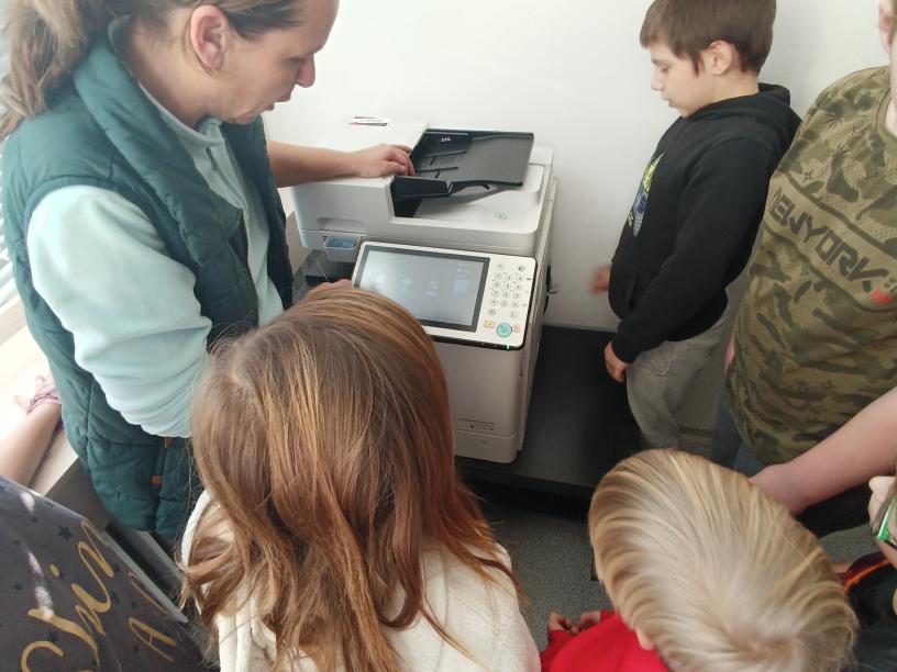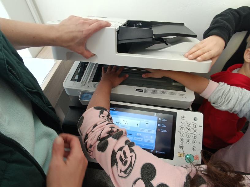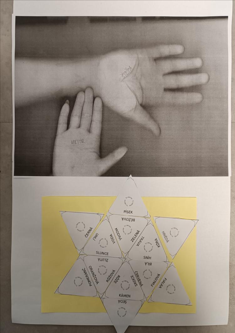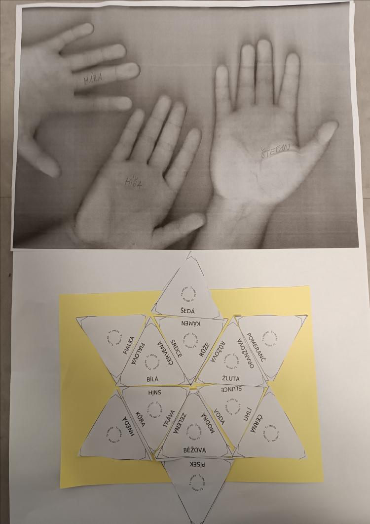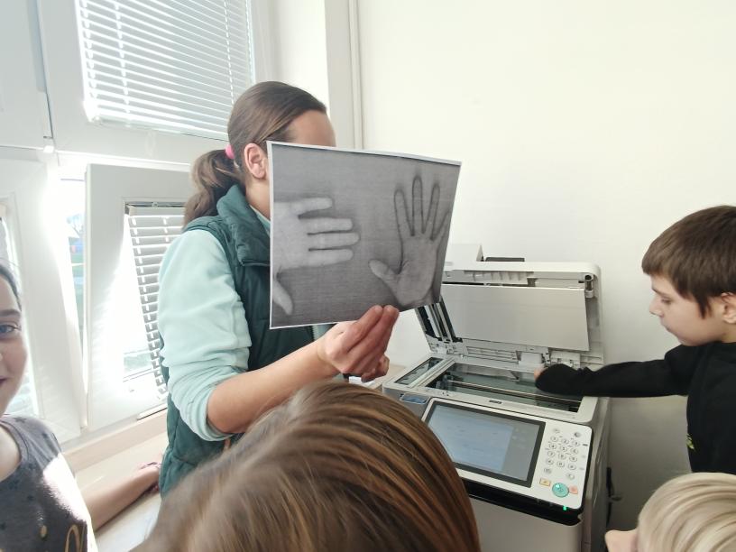 V rámci plnění úkolu Tiskařská dílna jsem do plnění úkolu přidala svou aktivitu. Družínci nejdříve shlédli video, následně viděli zvenku i zevnitř naše školní tiskárny a potom si vytvořené dvojice nebo trojice, okopírovali své dlaně - to pro ně byla naprostá bomba. Své okopírované dlaně následně nalepili na papír a pod ně nalepili hvězdu z dalšího úkolu.