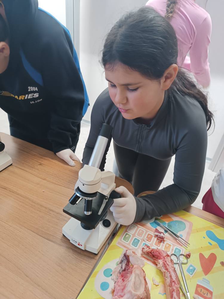 Protože jsou Družínci do bádání a objevování zapálení čím dál více, připravila jsem si pro ně zkoumání vepřových kostí. Nejdříve si kosti prohlédli zblízka, povídali jsme si o složení kostí, o jejich využití např. v kuchyni a následovalo samotné zkoumání pod mikroskopem. Nejdříve se Družínkům do zkoumání kostí moc nechtělo a nakonec se jim nechtělo ve zkoumání vůbec přestat.