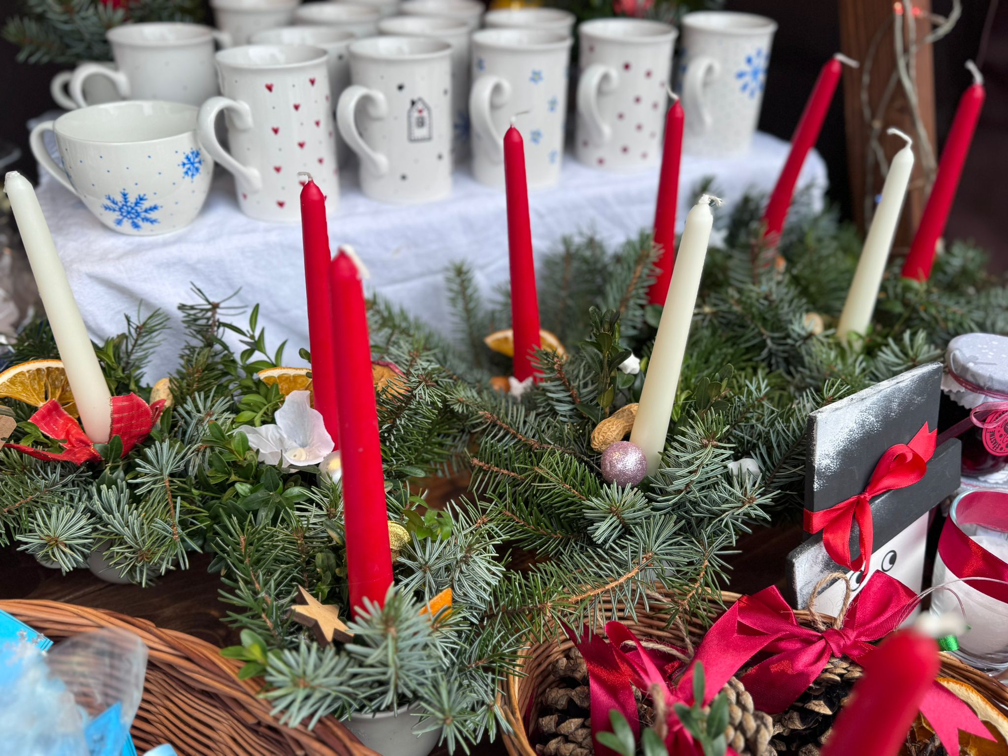 Děti ze starých hrníčků vyráběly vánoční svícny. Tyto svícny poté prodávaly na vánočním jarmarku.