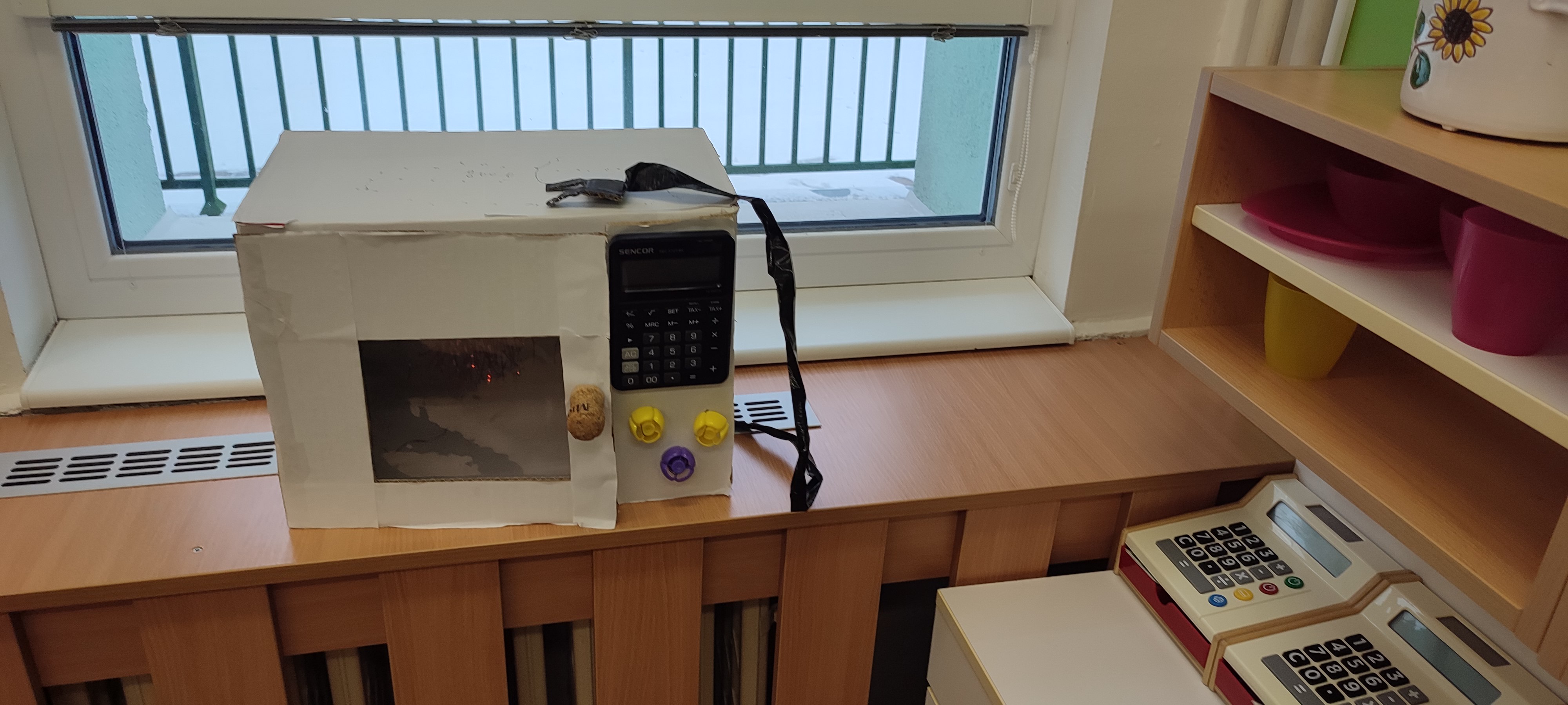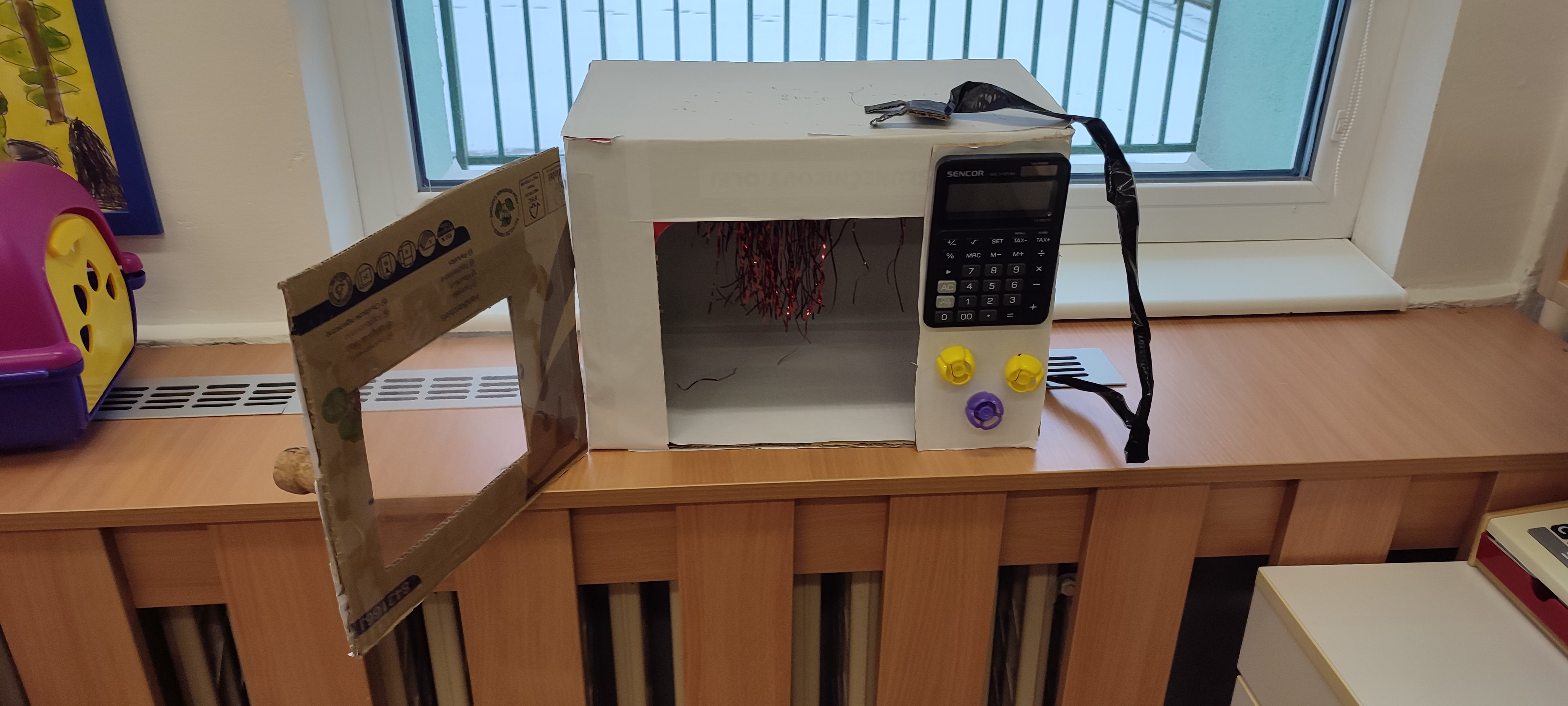 Mikrovlnka slouží k námětovým hrám v kuchyňce dětí.