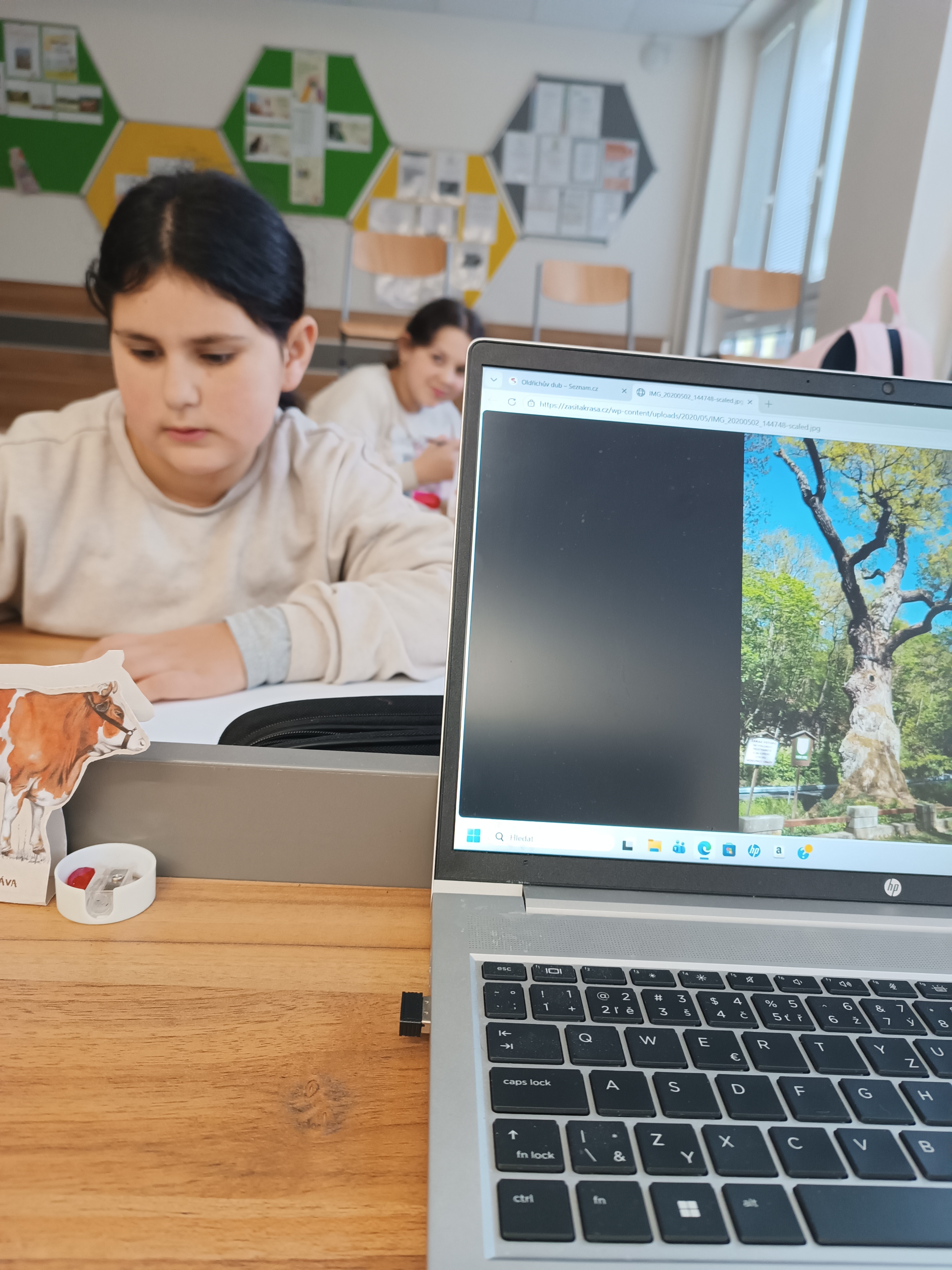 Po zjištění informace, že v našem kraji a nedaleko nás v obci Peruc na Lounsku bojuje v anketě Evropský strom roku i památný Oldřichův dub, rozhodli jsme se tento památný dub přiblížit i ostatním. Nejdříve jsme s Družínky diskutovali o významu a funkci stromů, čím jsou pro nás důležité a co pro stromy můžeme dělat my. Potom jsme si připomněli pověst o Oldřichovi a Boženě a pustili se do tvorby Oldřichova dubu (kartonová role, větve a vystřihané listy).