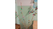 Děti ze třídy Lištiček (26 dětí) ve věku od 3-6 let tvořily na Velikonoce pro rodiče na výzdobu ovečku z odpadního