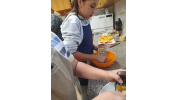 Projektový den je zaměřený na seznámení dětí s potravinami okolo nás; konkrétně s jablíčky. Děti ze třídy Koťátka pekly jablečný koláč - podílely se na