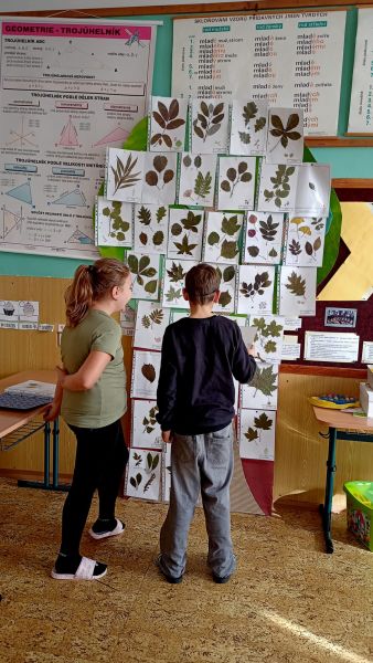 Žáci 5. třídy vyráběli herbář listů pomocí vyrobené učební pomůcky. Žáci měli za domácí úkol nasbírat a vylisovat různé druhy listů stromů, které jsme ve škole lepili na papír a společně popisovali. Žáci se tak učili porovnávat jednotlivé listy podle tvaru a okrajů. Učební pomůckou byl strom vyrobený z kartonu, který sloužil jako nástěnka. Po dokončení herbáře slouží strom jako dekorace na chodbě 2. stupně. Přínosem je skutečnost, že herbář žáci vyráběli sami a ne jejich rodiče.