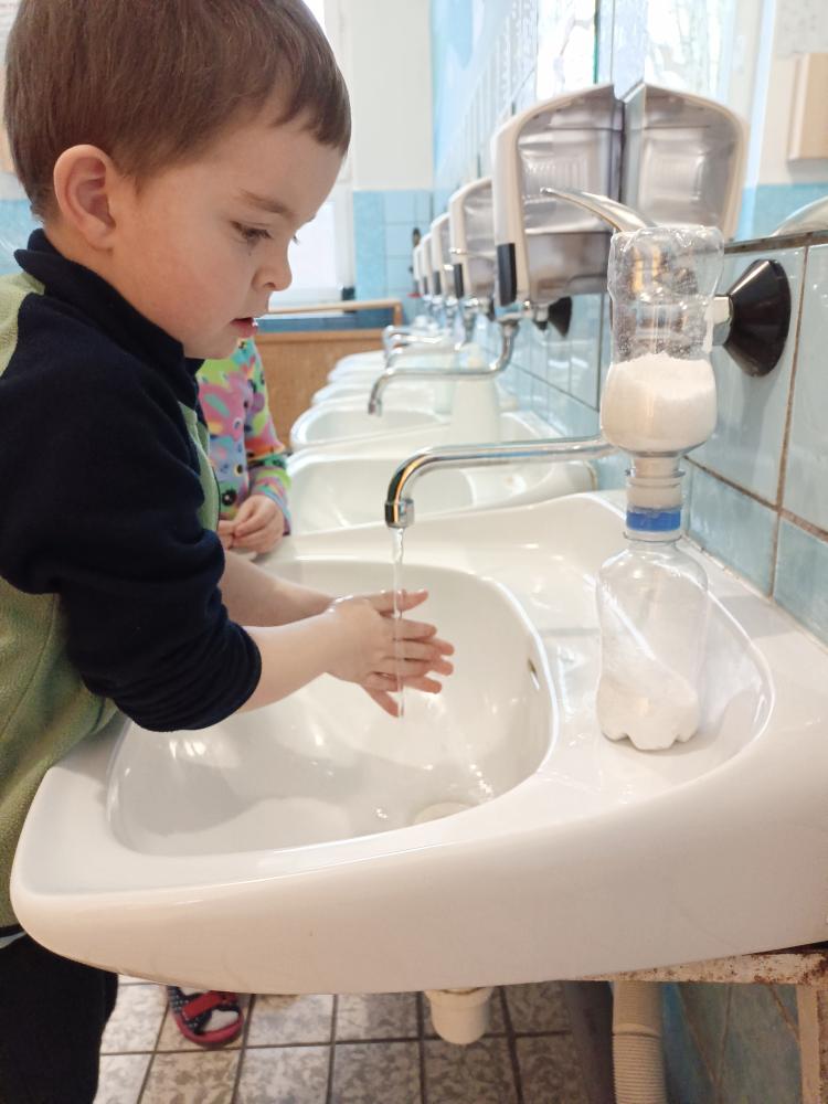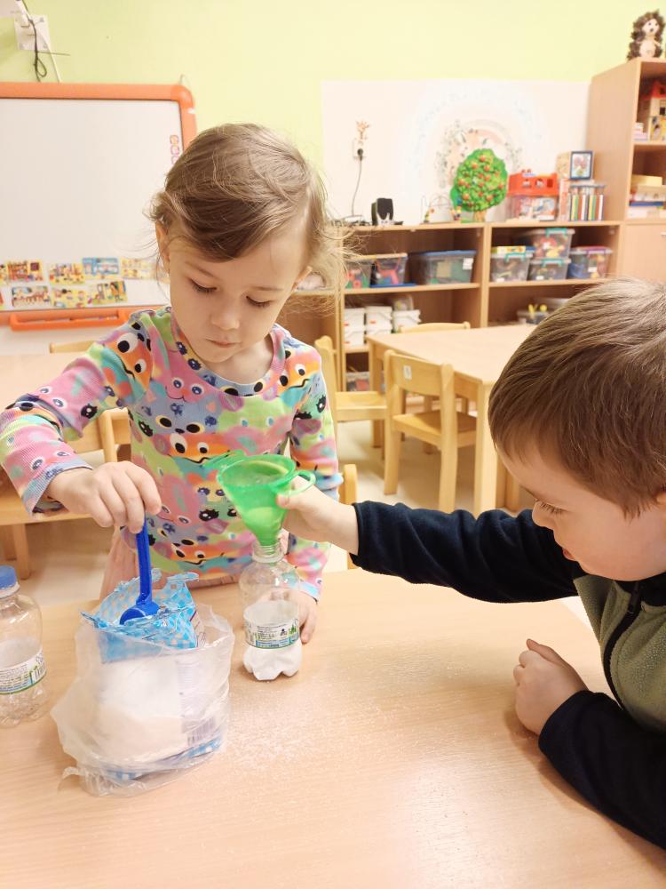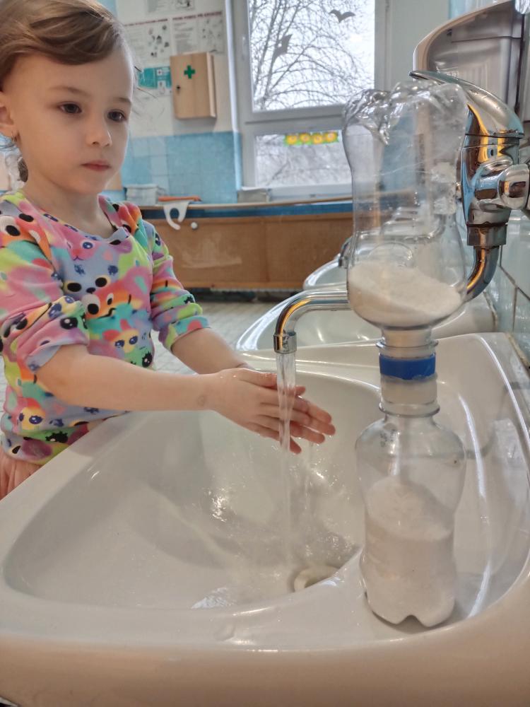 Děti si vyrobily z pet lahví vlastní přesýpací hodiny, které je měly naučit neplýtvat vodou. Malé lahve naplnily solí a učitelka jim pomohla udělat díru do vršků. Pomocí tavné pistole se lahve spojily.