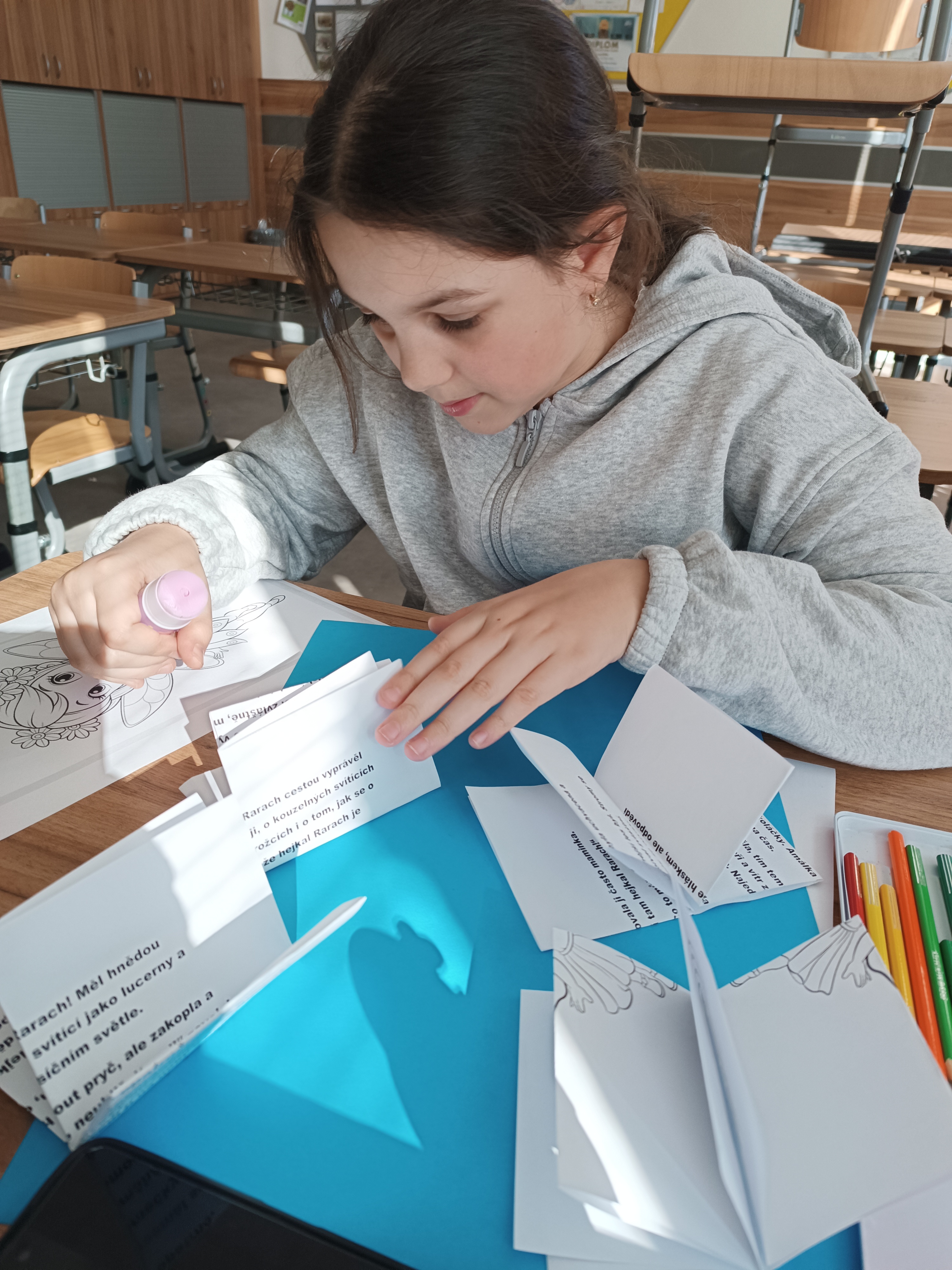 Protože je březen Měsícem knihy, Družínci si ze starých českých pohádkových pracovních listů (určených ke skartaci) složili pohádkový příběh ve tvaru knížek, vybarvili omalovánku dané pohádky a vše nalepili na barevné kartony.