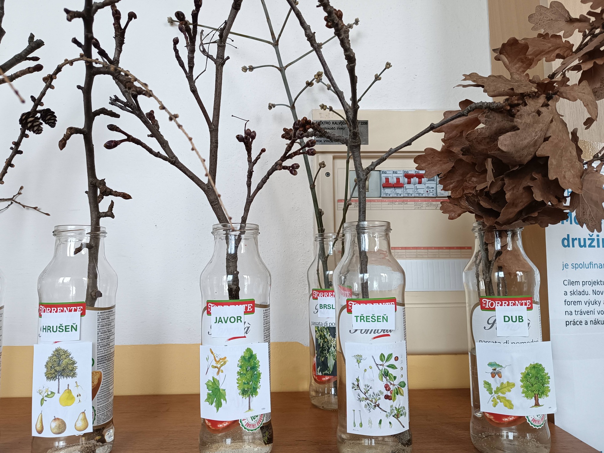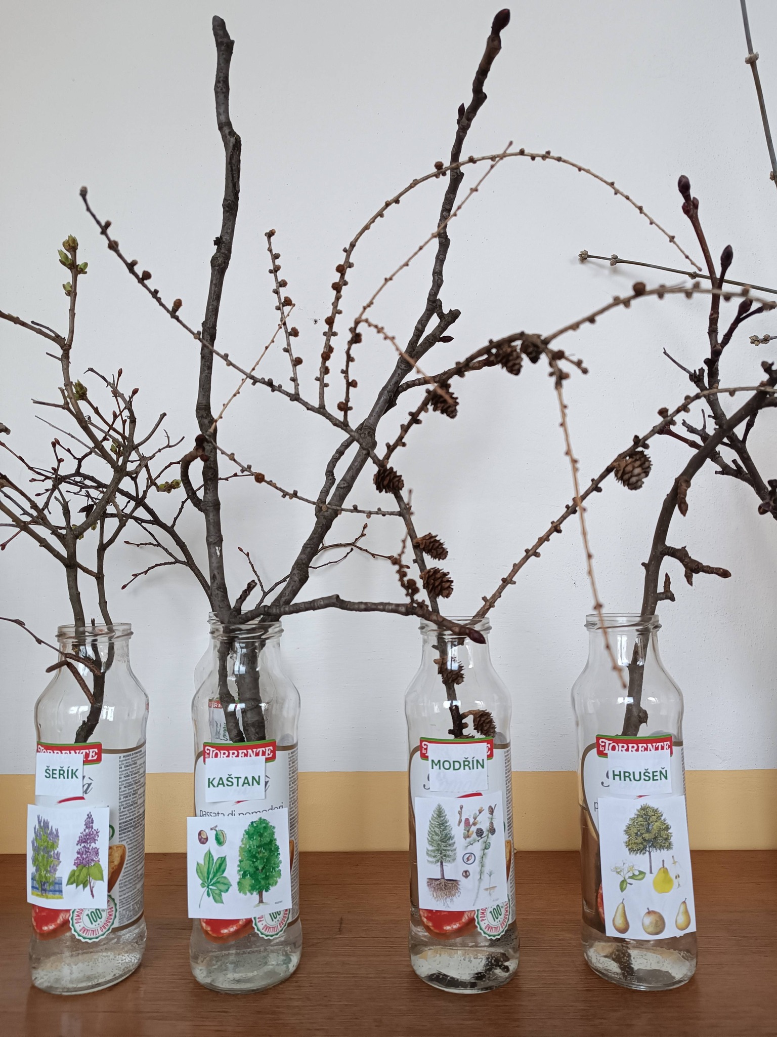 Družínci si vyzkoušeli poznat druhy stromů podle větviček a pupenů. Po správném určení udělali výstavku s větvičkami a názvy. Pozorují, jak pupeny raší, stávají se z nich první zelené lístky a vše si zapisují a zakreslují do svých badatelských listů.