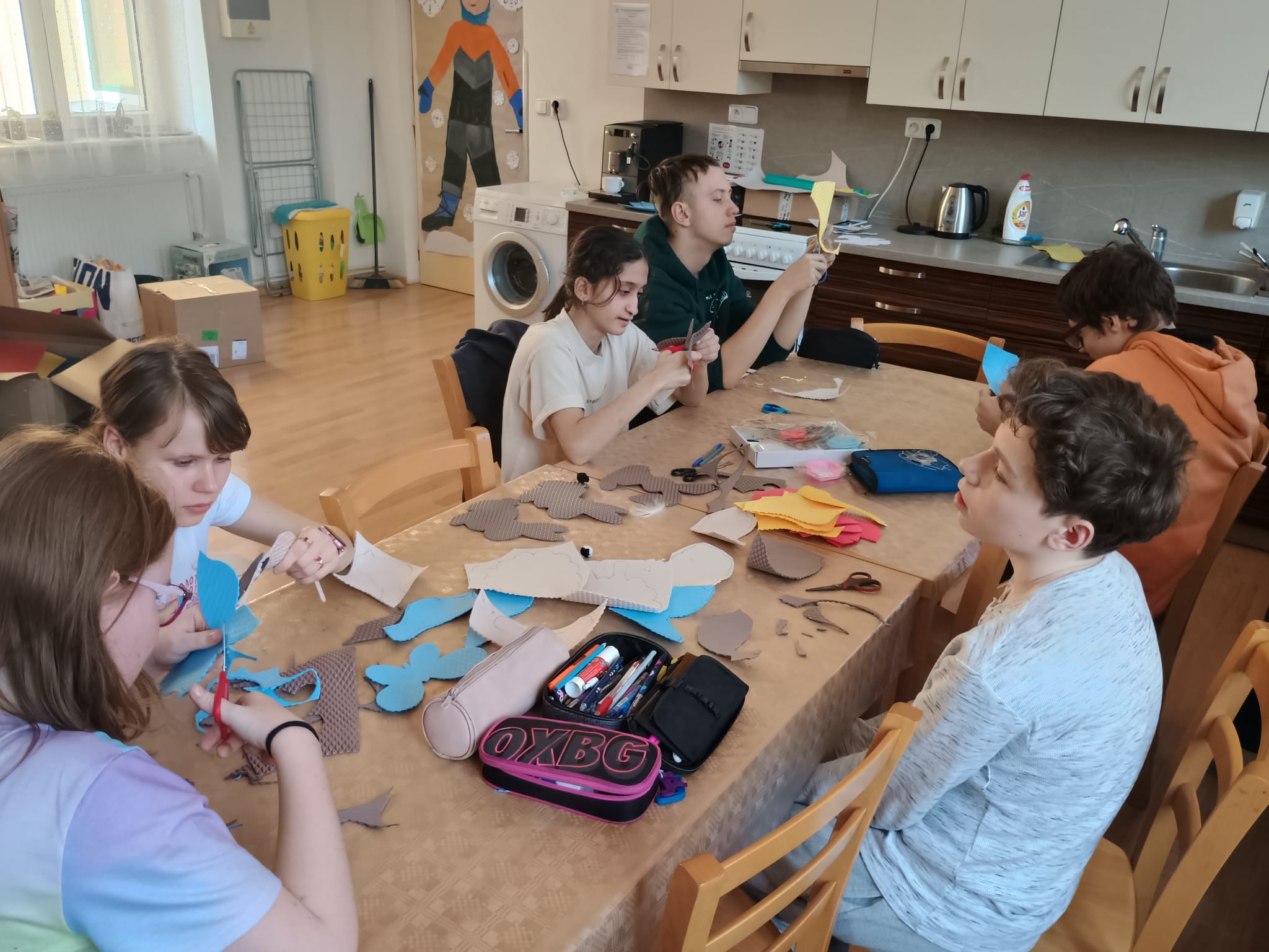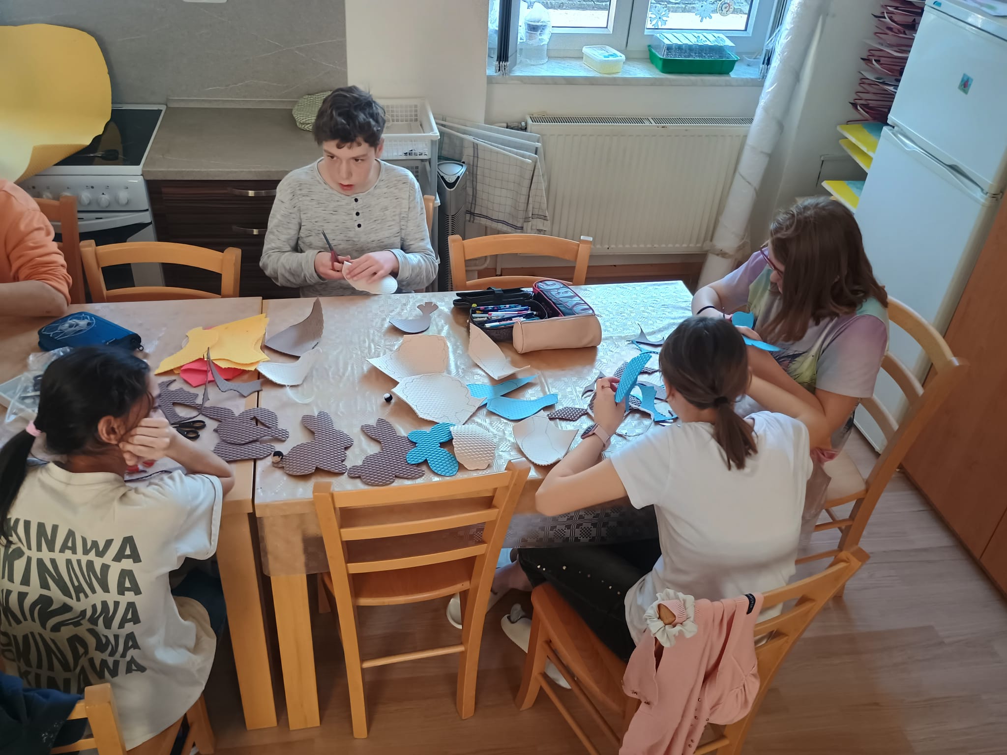 Z odpadového materiálu od firmy Vylen s.r.o., Žďár nad Sázavou jsme s žáky vyráběli dekorace pro jedno ze stanovišť Jarní stezky městem pořádané Kostelcem nad Orlicí. K výrobě jsme použili šablony, fixy, nůžky, tavnou pistoli, nalepovací oči, chlupaté drátky. S materiálem se dobře pracuje, lze ho snadno stříhat nůžkami a vydrží i nepřízeň počasí.