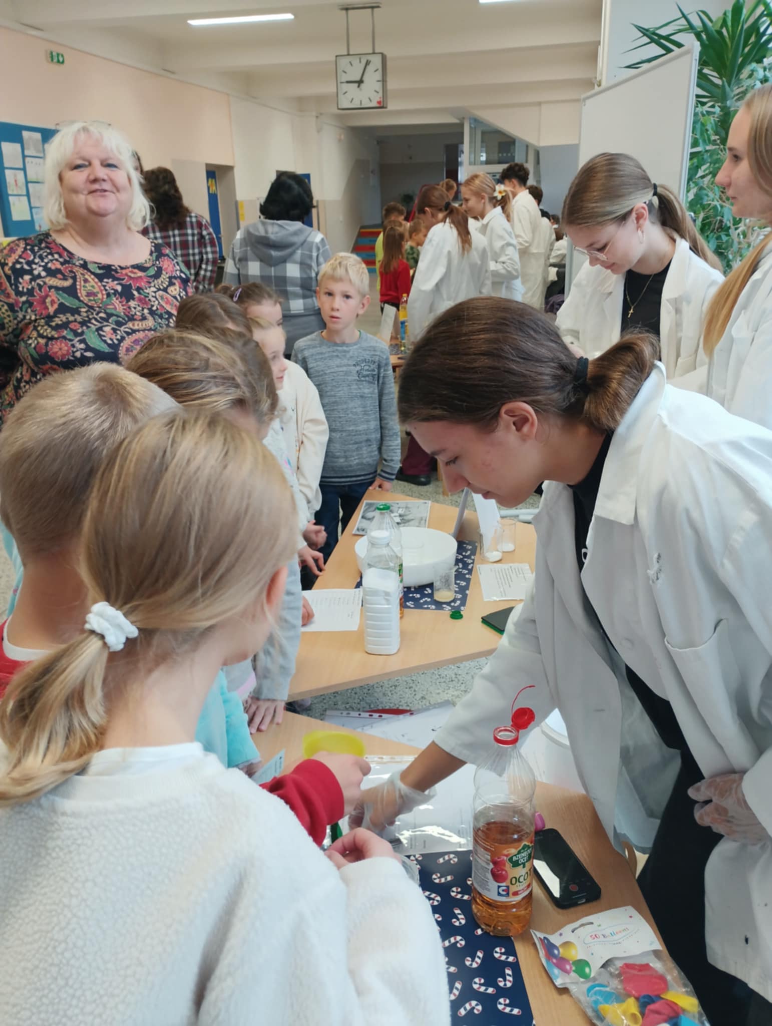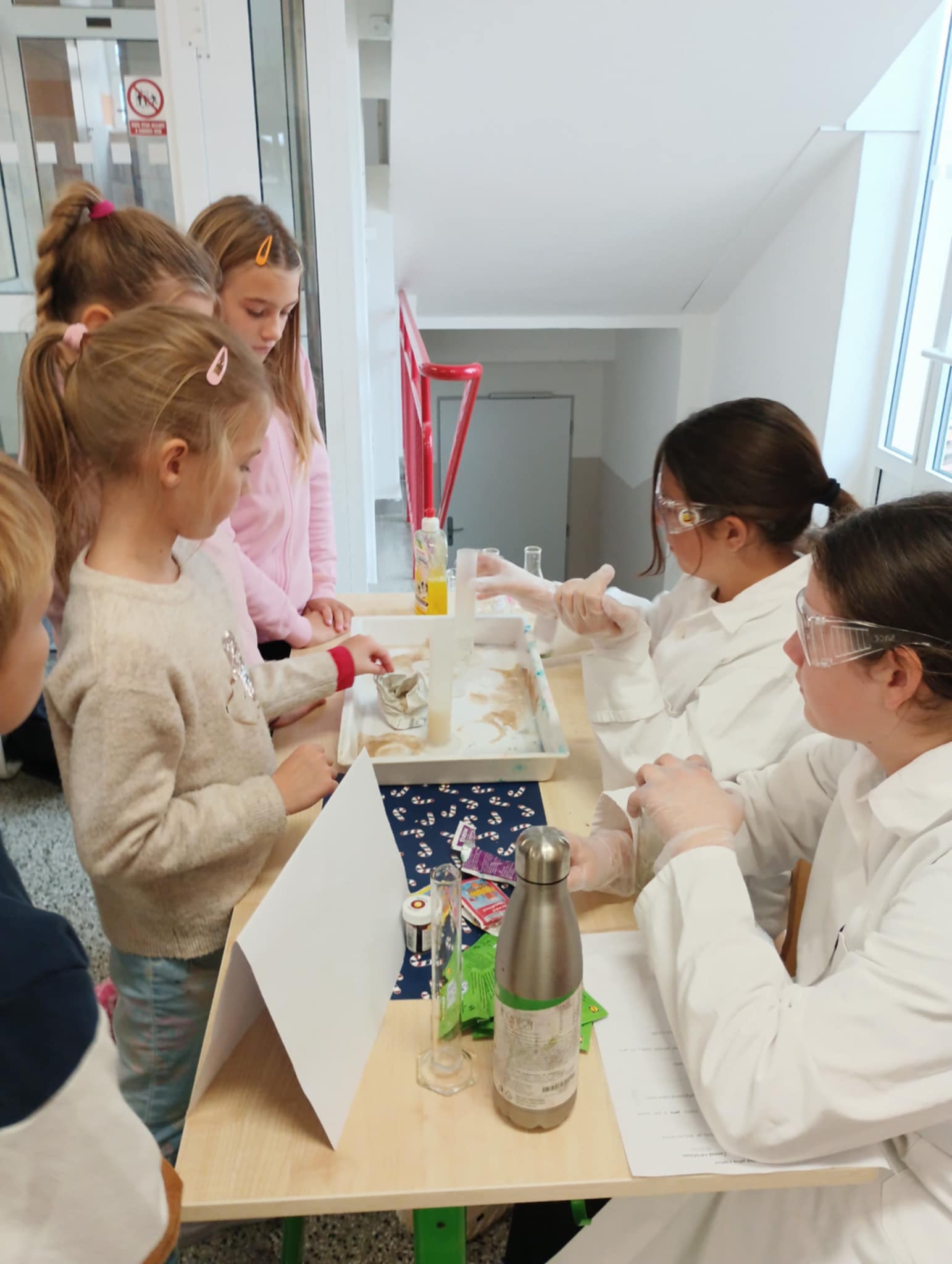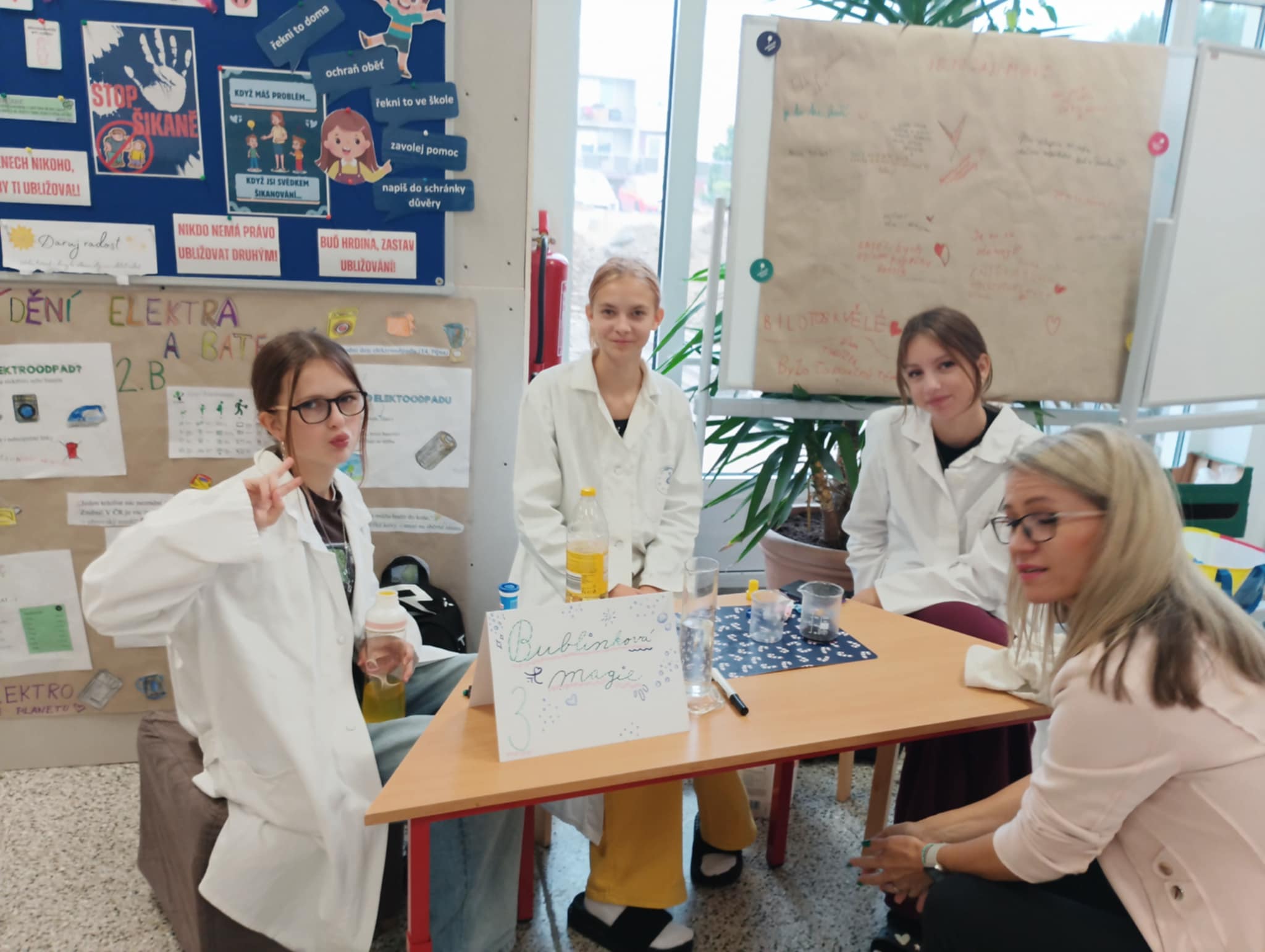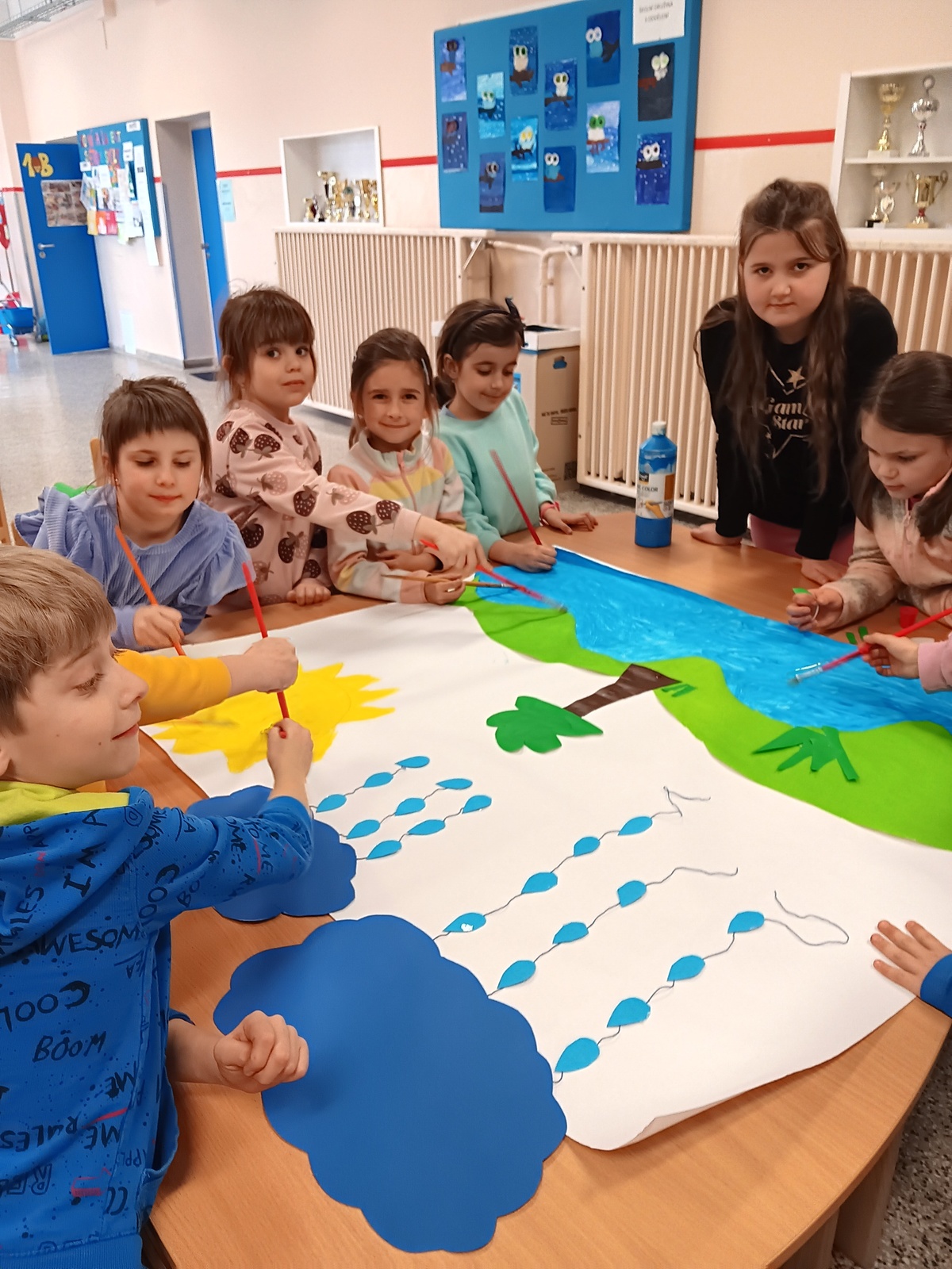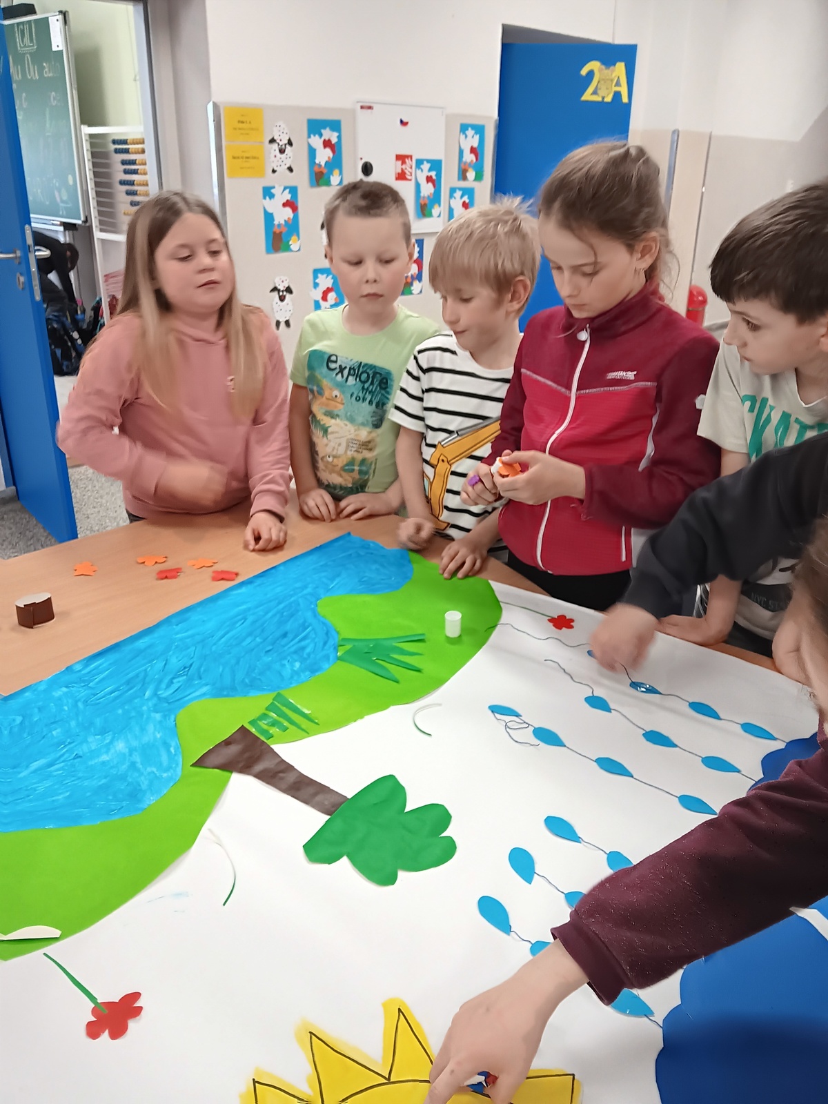 Zaměřili jsme se na téma voda – její význam, hrátky s vodou i to, proč je důležité s ní šetřit. Ve školní družině se děti zábavnou formou učily, jak vodu chránit a správně s ní hospodařit. Společně vytvořily koloběh vody a vyzkoušely si také roli „kohoutkového hlídače“. Žáci prvního stupně si vyrobili zmrzlinu pomocí sněhu (směs z mléka, cukru, granka a kakaa vložili do misky se solí a sněhem). Na druhém stupni pak žáci osmého ročníku připravili pro mladší spolužáky projektový den s názvem Vodohrátky. Na jednotlivých stanovištích seznamovali děti s vlastnostmi vody, jejím významem pro život i s tím, proč je nutné vodu chránit.