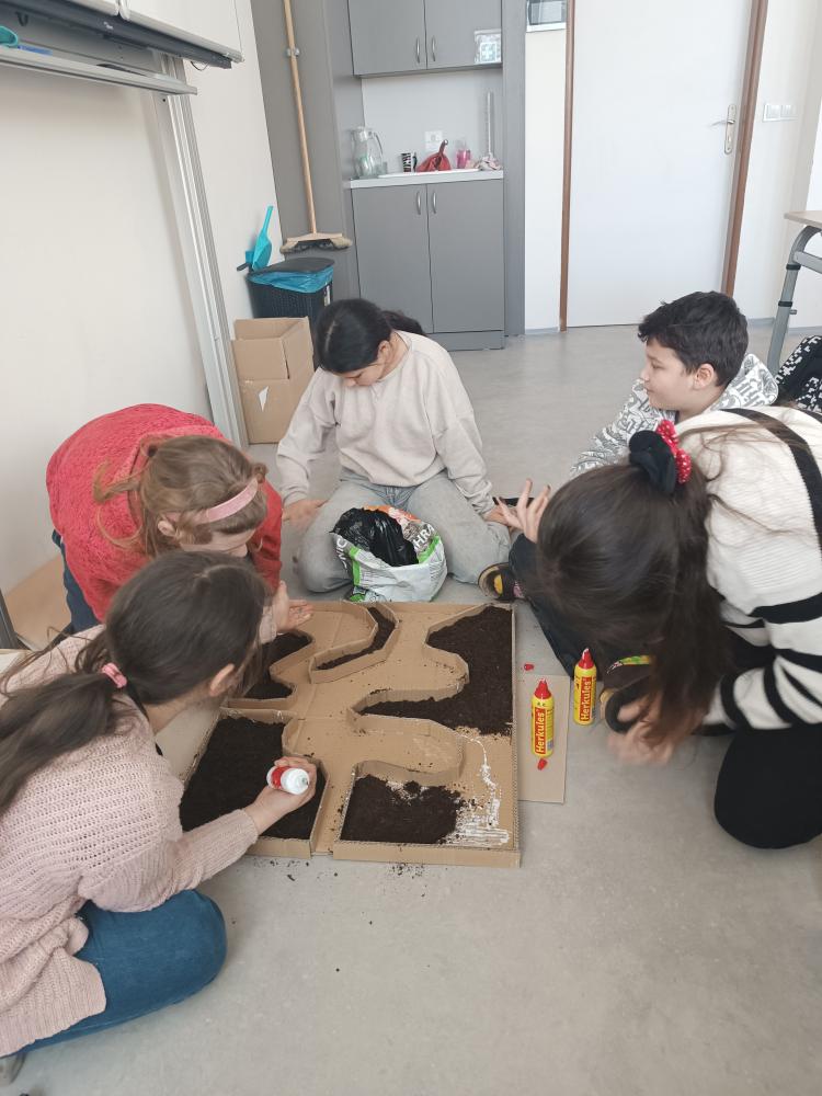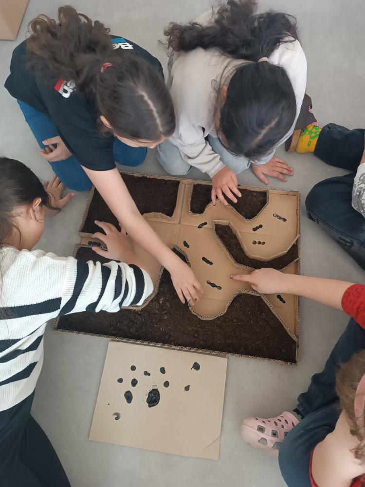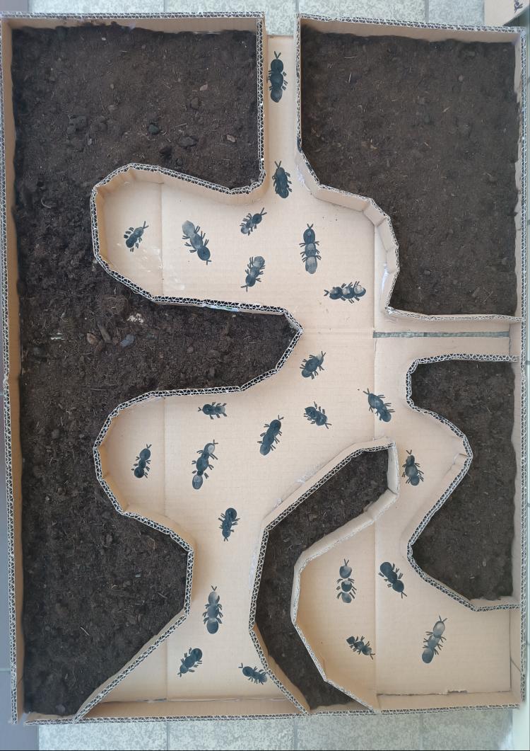 Jaro vybízí k pozorování probouzející se přírody. Než se vydáme pátrat do terénu, nejdříve jsme si udělali mraveniště z kartonu (kartony, laminovací nůž, tavná pistole - před tvorbou byli Družínci seznámeni s bezpečností práce a manipulací s laminovacím nožem). Po vytvoření mraveniště Družínci doplnili mraveniště zeminou a otisky prstů (mravenci). Z kartonu také vytvořili mravence a jeho tělo vyplnili pomocí krepového papíru a nakonec doplnili popisky.