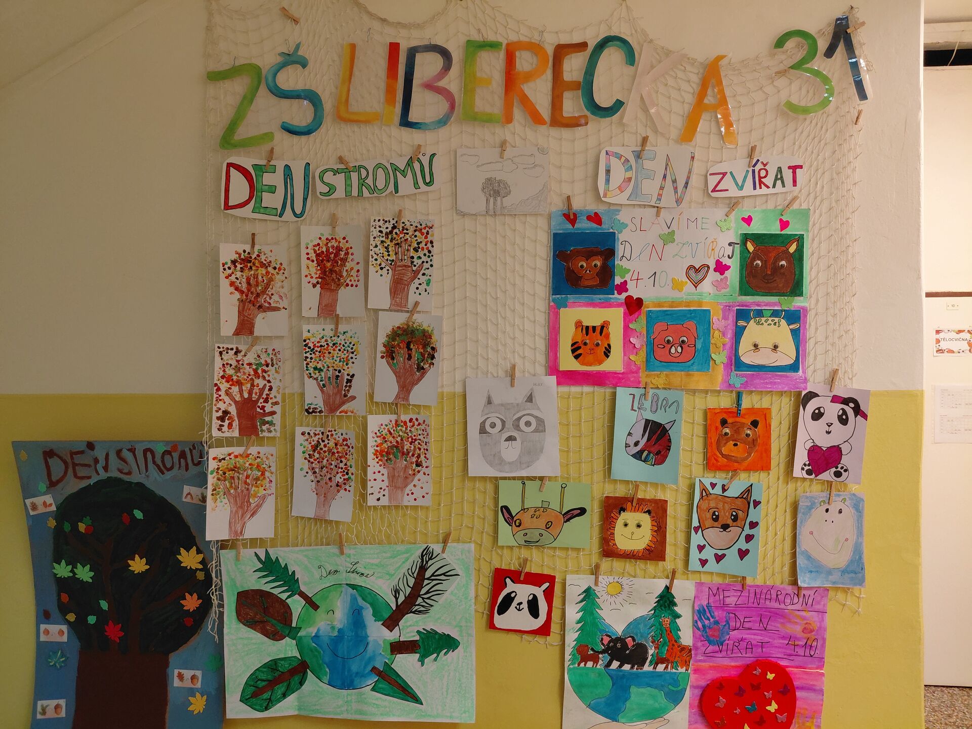 Tento rok jsme se v rámci naší budovy Liberecká zaměřili na tvorby projektů, které se týkají ochrany přírody a mezinárodních dnů. Různé třídy napříč 1. a 2. stupněm se každý měsíc pustí do tvorby výrobků na určená témata. 9. třídy vždy doplňují výrobky plakáty s různými informacemi. Všechny výrobky jsou vystaveny v přízemí, kde jsou pro všechny k dispozici. Po cestě do tříd si žáci informace pročítají a učí se tak ekologii zábavnou formou. Učitelé se také inspirují a dozvídají nové informace.
