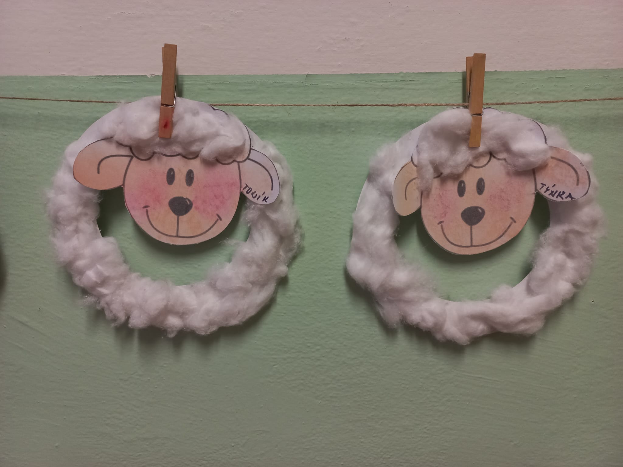 K Velikonocům a k jaru patří ovečky a tak jsme si je společně vyrobili. Použili jsme papírové talíře, vatu, lepidlo a pastelky.