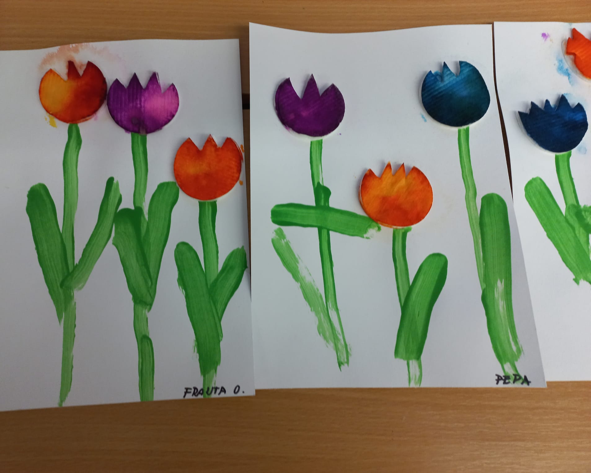 Tulipány jsou symbolem jara a nám tulipány zdobí naší školku. Materiál: vatové tampony, barvy, lepidlo, čtvrtky.