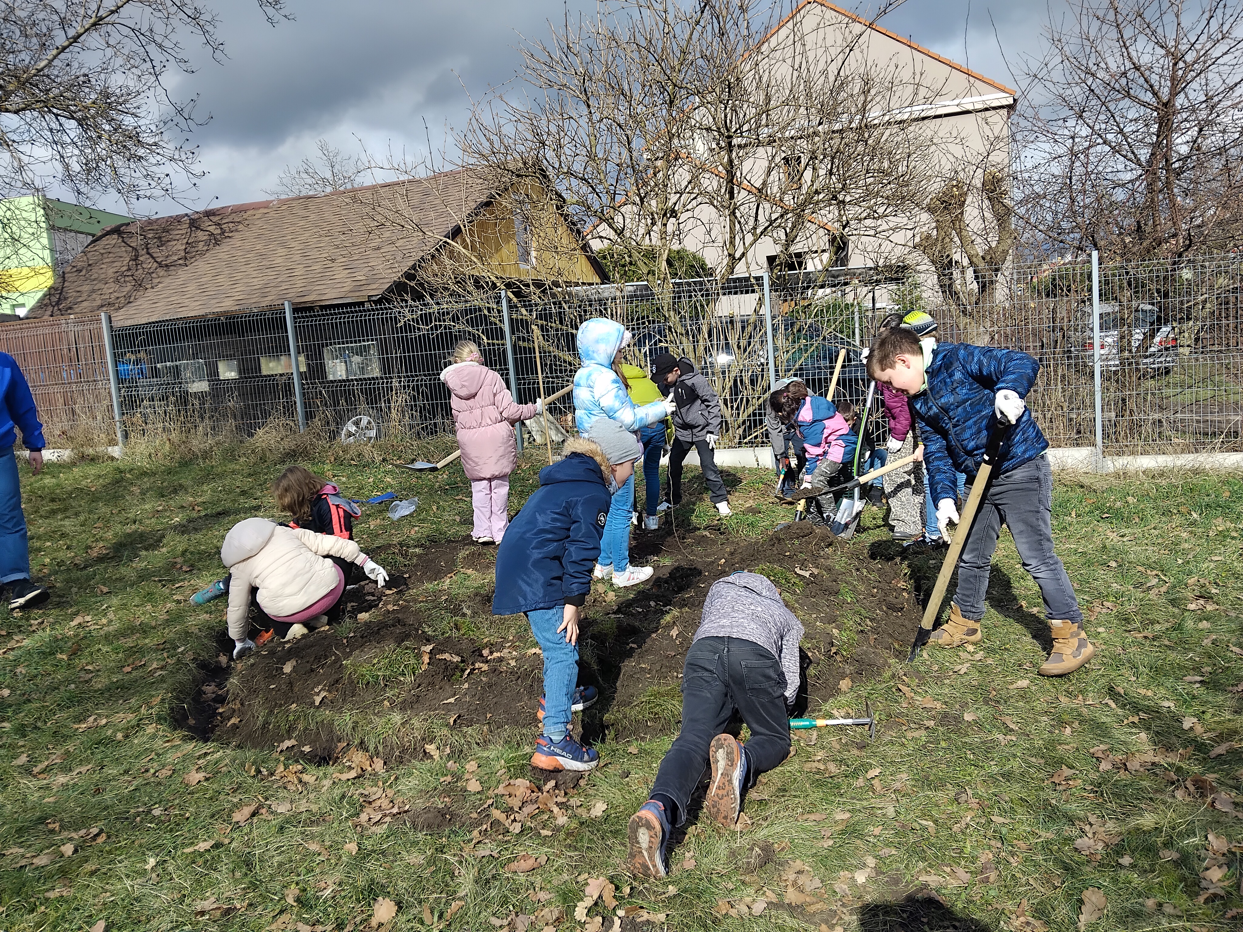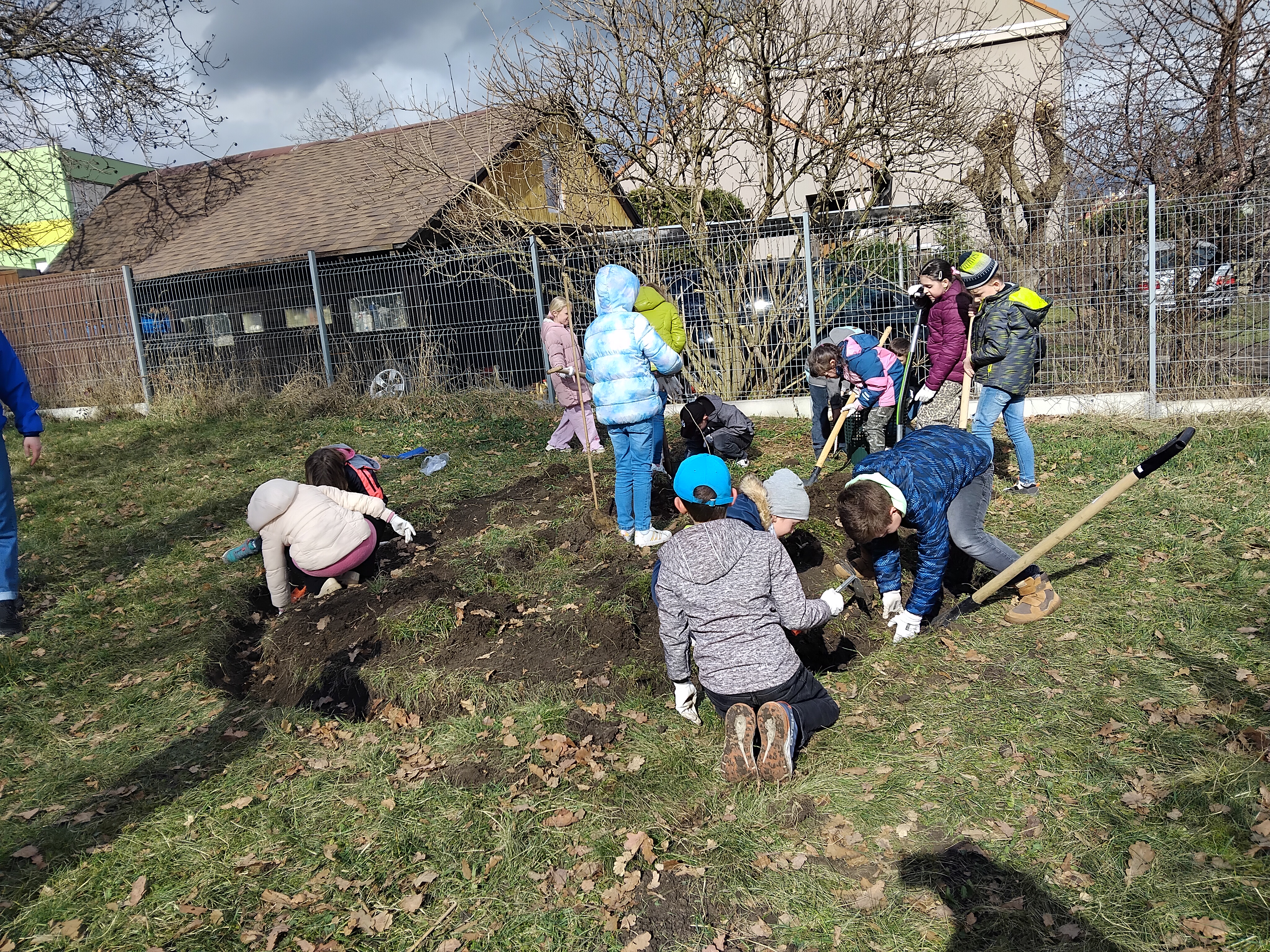 Vytvořili jsme speciální záhonek osázený mokřadními rostlinami, které dokážou přirozeně zachytávat dešťovou vodu a pomáhají tak zlepšovat hospodaření s vodou v okolí školy. Součástí projektu byla také výsadba motýlích keřů, které slouží jako důležitý zdroj potravy pro opylovače, zejména motýly a včely. Celá zahrádka se nachází na okraji školního sadu, a proto má ještě jeden důležitý přínos. Podporuje opylování ovocných stromů, čímž přispívá k jejich zdravému růstu a bohatší úrodě.