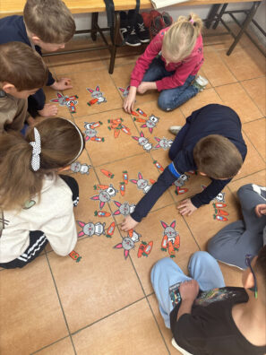 Jedním ze stanovišť byla i matematická aktivita „Zajíček s mrkvičkami“, která rozvíjela početní dovednosti hravou formou. Děti přiřazovaly správný počet mrkviček podle čísla, teček nebo jednoduchých příkladů. Aktivitu bylo možné přizpůsobit úrovni žáků – od základního počítání do 10 až po jednoduché sčítání, odčítání či porovnávání.