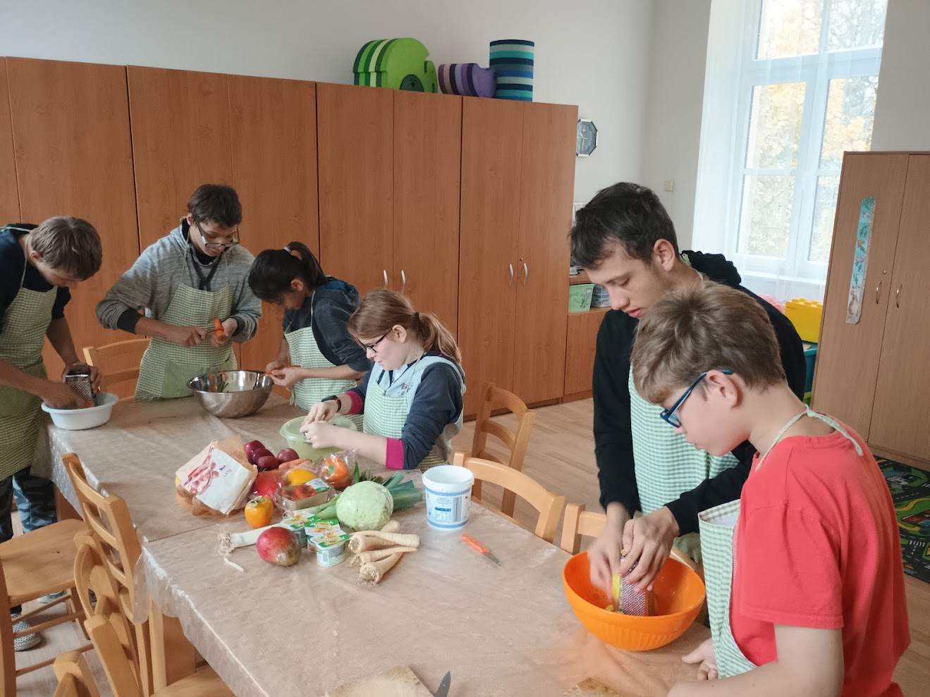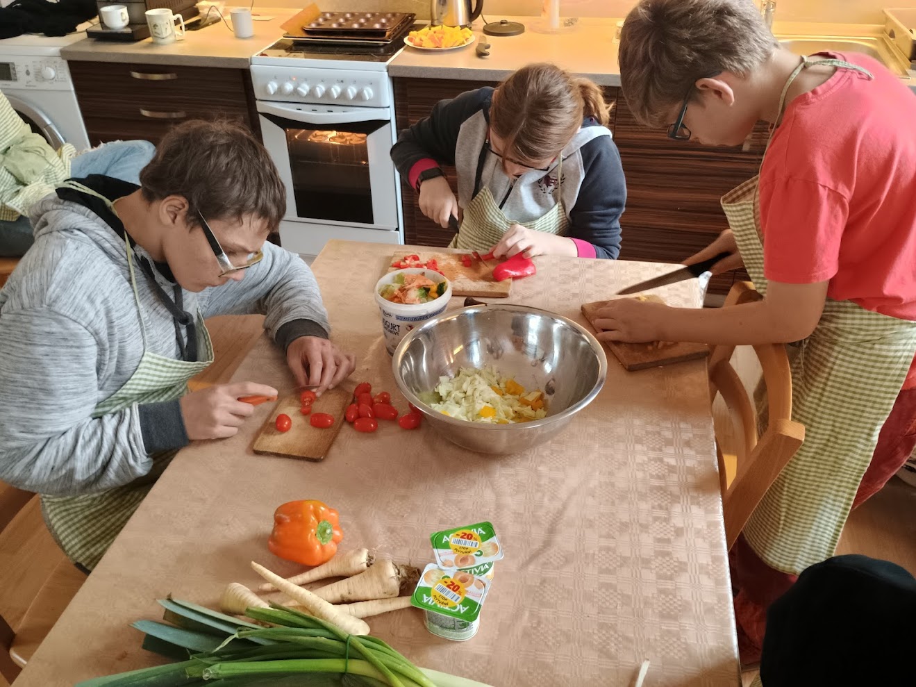 V Penny jsme si zakoupili tašku výrobků s končící dobou trvanlivosti. Nejprve jsme vymýšleli, jak bychom mohli potraviny zpracovat. Nápadů bylo hodně. Zaměřili jsme se na ty, pro které jsme měli i doplňkové ingredience či kuchyňské přístroje a dotaci 2 vyučovacích hodin. Nakonec jsme upekli jablečné muffiny, mrkvový salát s jablky, zeleninový salát a ovocný talíř. Příště bychom volili delší časovou dotaci.