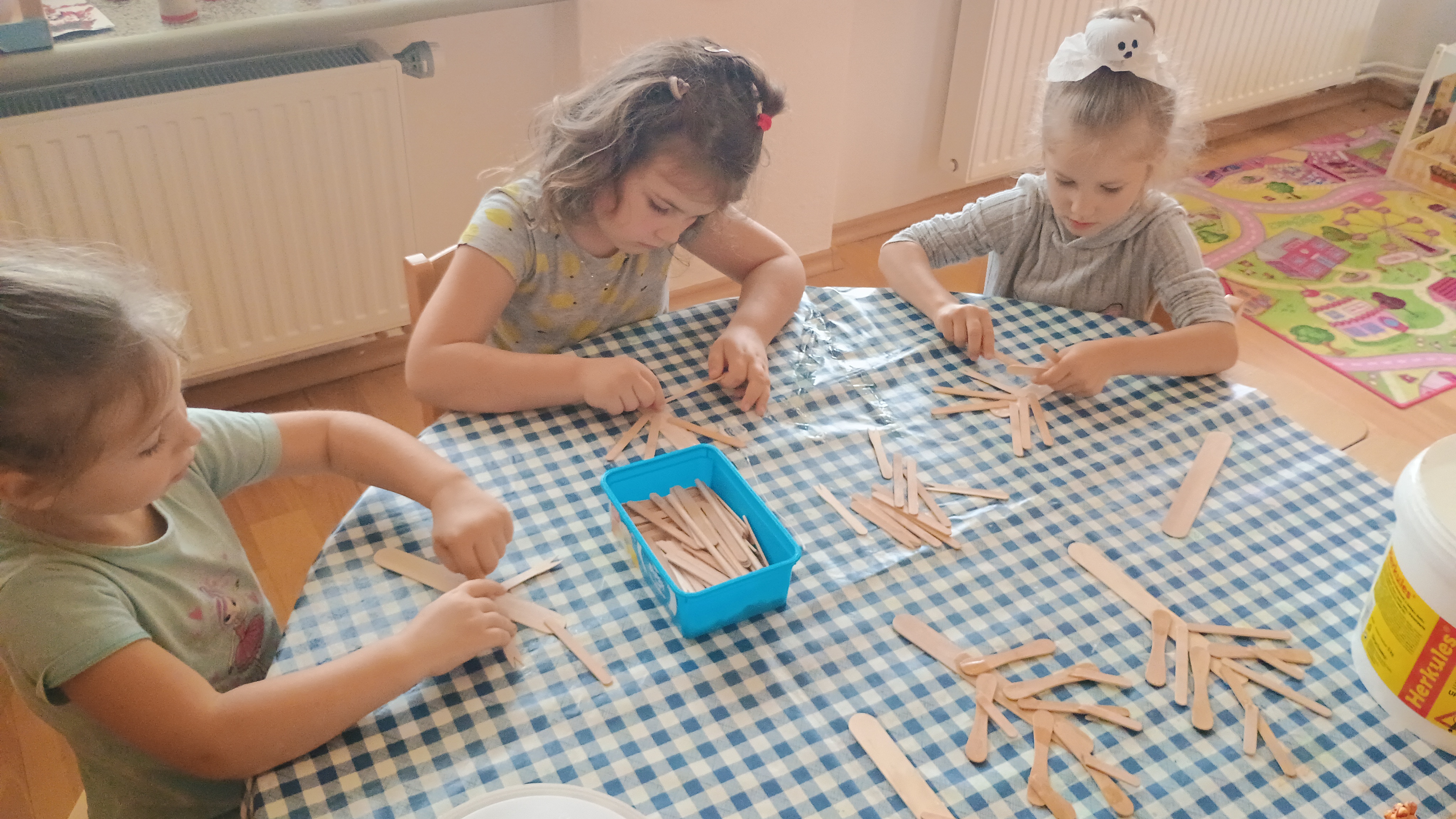 V rámci oslav Dne stromů jsme si dětmi povídali o stromech, jak jsou důležité pro planetu Zemi, pro nás lidi a co vše ze dřeva se vyrábí. V minulém školním roce jsme s dětmi sbírali špejle od nanuků a nyní jsme je využili ke kreativní činnosti, a to k výrobě stromů. Současně jsme využili k výrobě listů další materiál, a to látky, které jsme vybrali na loňské recyklo akci „Pošli to dál“. Děti si vybraly vhodné barvy látek tak, aby mohly znázornit stromy v každém ročním období. Protože počasí přálo, vydali jsme se na delší vycházku k lesu. Pozorovali jsme, jak se stromy během roku mění. Cestou jsme sbírali barevné listy, které jsme následně ve školce využili k podzimnímu pokusu „Tančící listy“. Věříme, že cíl této akce, aby si dětí více vážily přírody a aby daly věcem ještě šanci na nový život, byl naplněn.