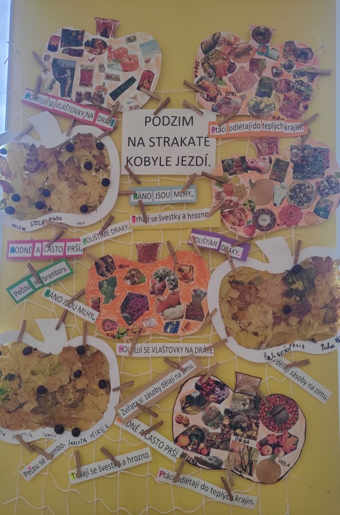 Druháci se vydali na podzimní vycházku do okolí školy. Sluníčko ještě hřálo, ale ve vzduchu už bylo cítit, že přichází podzim. Děti pozorovaly barevné stromy, sbíraly spadané listy a kaštany. Chtěly si z přírody přinést co nejvíce pokladů pro podzimní tvoření. Ve škole pak společně vytvořily krásnou podzimní výzdobu. Na výkresy nakreslily velké dýně z papíru, které ozdobily nasbíranými listy, semínky a dalšími přírodninami. Třída teď září barvami podzimu a všem připomíná, jak je toto roční období kouzelné.