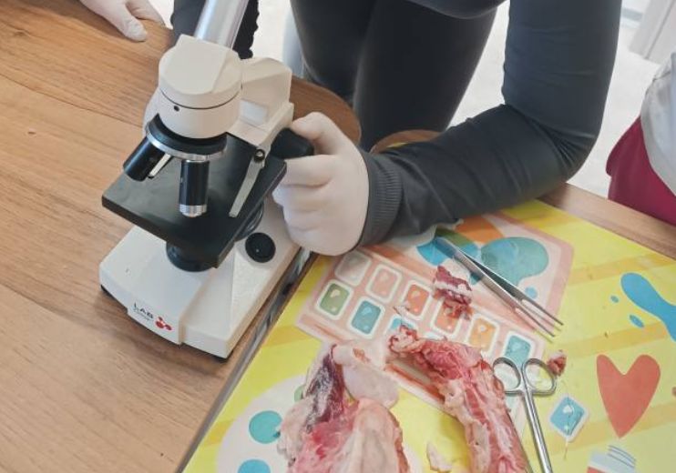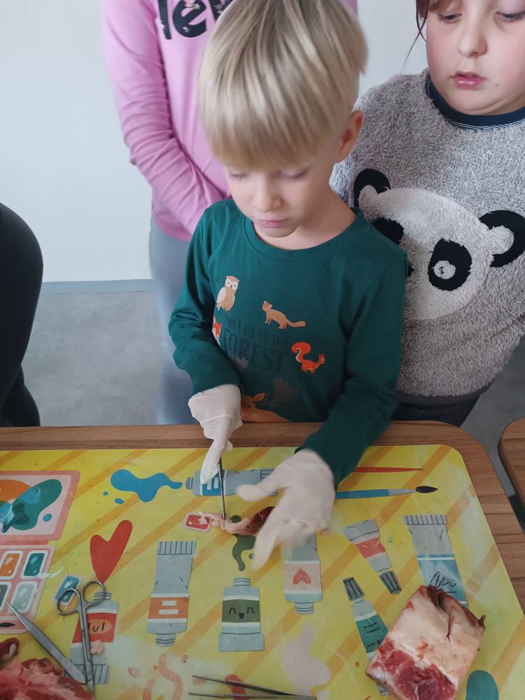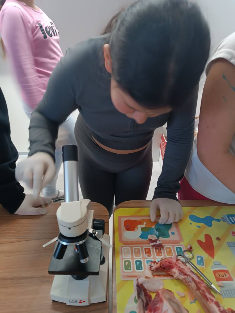 Protože jsou Družínci do bádání a objevování zapálení čím dál více, připravila jsem si pro ně zkoumání vepřových kostí. Nejdříve si kosti prohlédli zblízka, povídali jsme si o složení kostí, o jejich využití např. v kuchyni a následovalo samotné zkoumání pod mikroskopem. Nejdříve se Družínkům do zkoumání kostí moc nechtělo a nakonec se jim nechtělo ve zkoumání vůbec přestat.