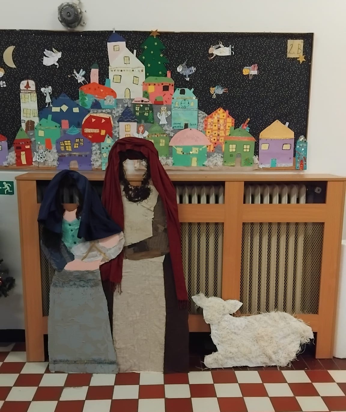 3) příprava fotofigurín: děti "oblékaly" Jozefa a Marii - využití kartónu a starých látek