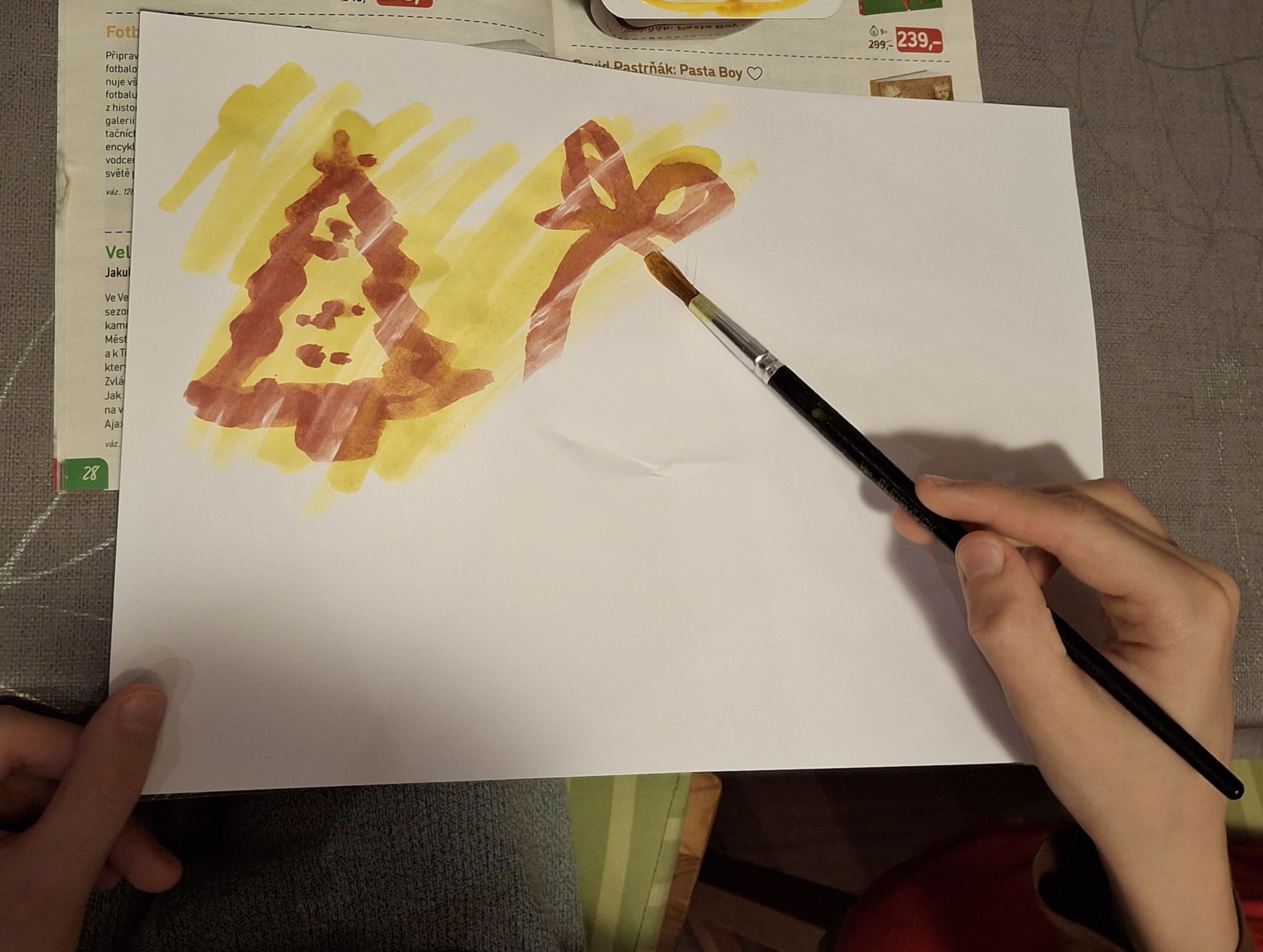 Již při natírání vidí kouzlo - původní obrázek, který je namalovaný směsí sody a vody zčervená a pozadí zůstane žlutooranžové.