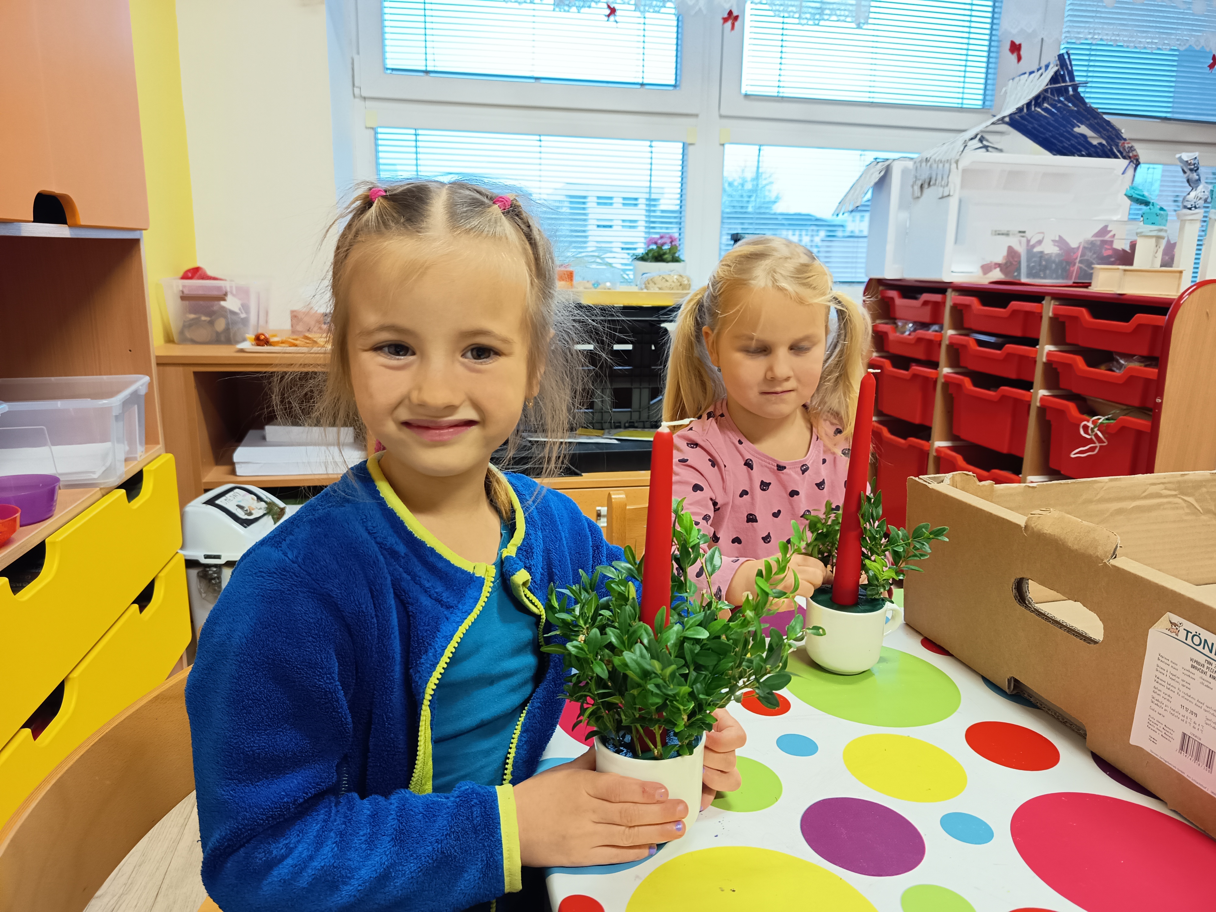 Děti ze starých hrníčků vyráběly vánoční svícny. Tyto svícny poté prodávaly na vánočním jarmarku.