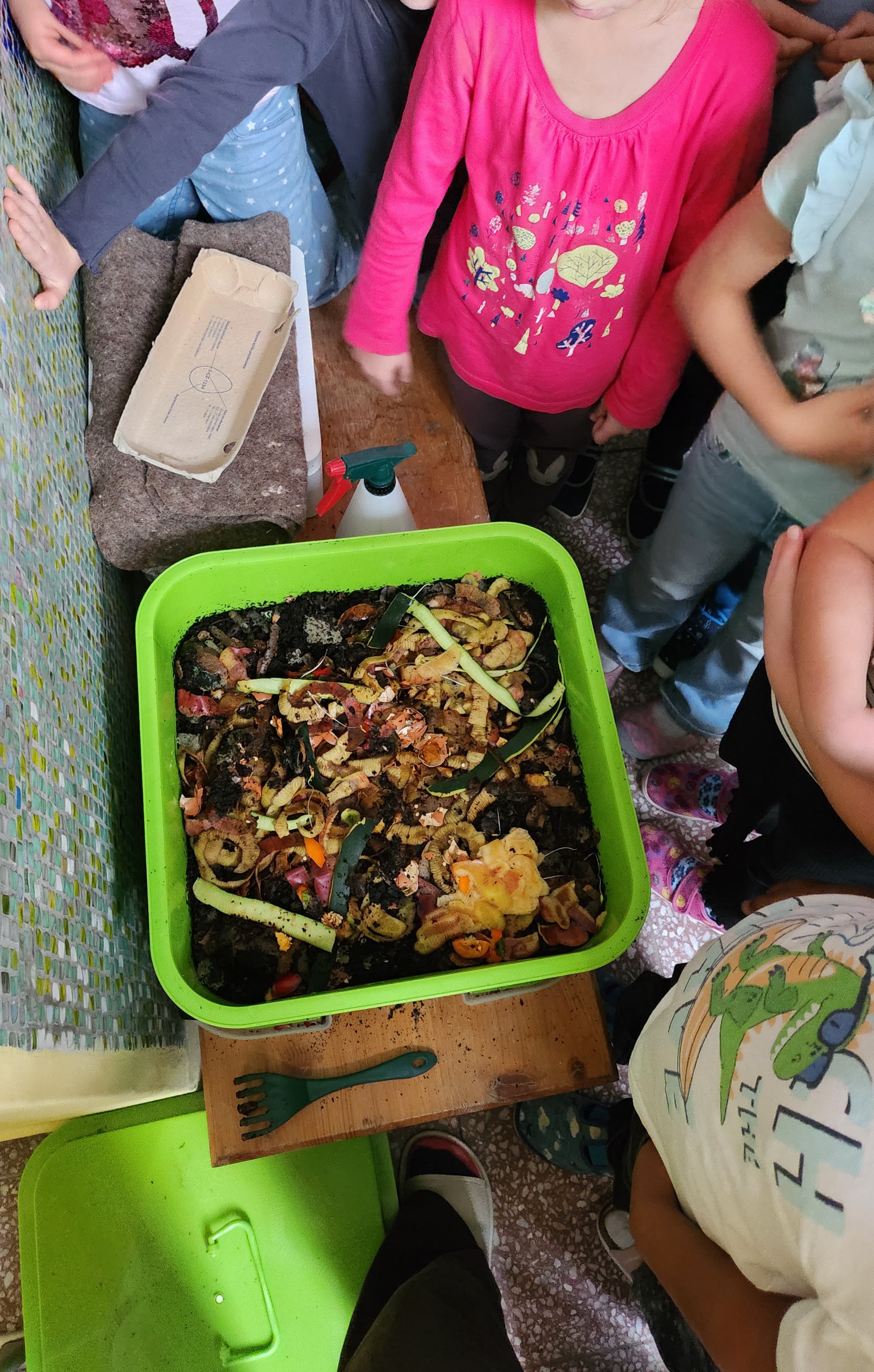 Téma hodiny: Představení vermikompostéru a tématu kompostování žákům 1. třídy na základě práce s knihou František z kompostu, autorka Simona Čechová.