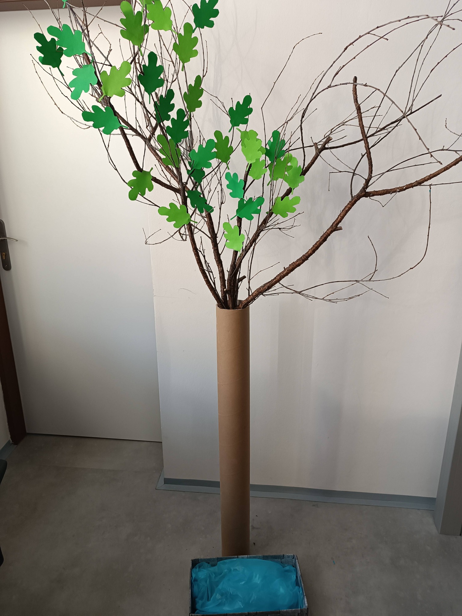 Po zjištění informace, že v našem kraji a nedaleko nás v obci Peruc na Lounsku bojuje v anketě Evropský strom roku i památný Oldřichův dub, rozhodli jsme se tento památný dub přiblížit i ostatním. Nejdříve jsme s Družínky diskutovali o významu a funkci stromů, čím jsou pro nás důležité a co pro stromy můžeme dělat my. Potom jsme si připomněli pověst o Oldřichovi a Boženě a pustili se do tvorby Oldřichova dubu (kartonová role, větve a vystřihané listy).