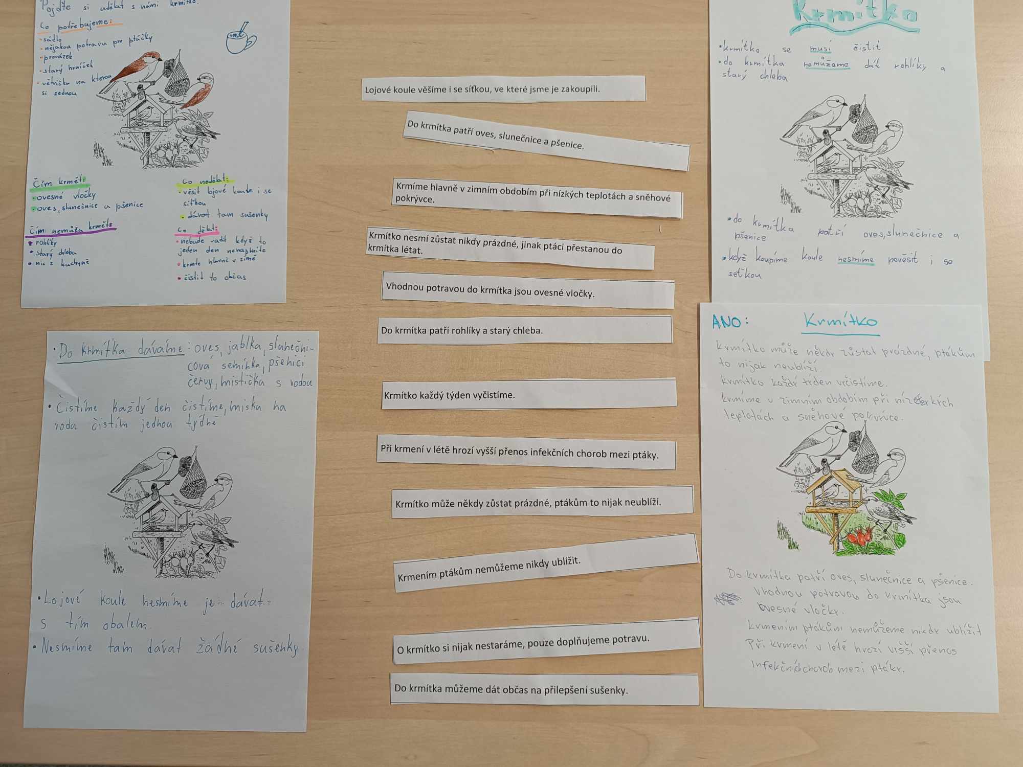 Seznámení s krmením ptáků v zimě, vhodná potrava, péče o krmítko - práce s výroky - určování pravdivosti.